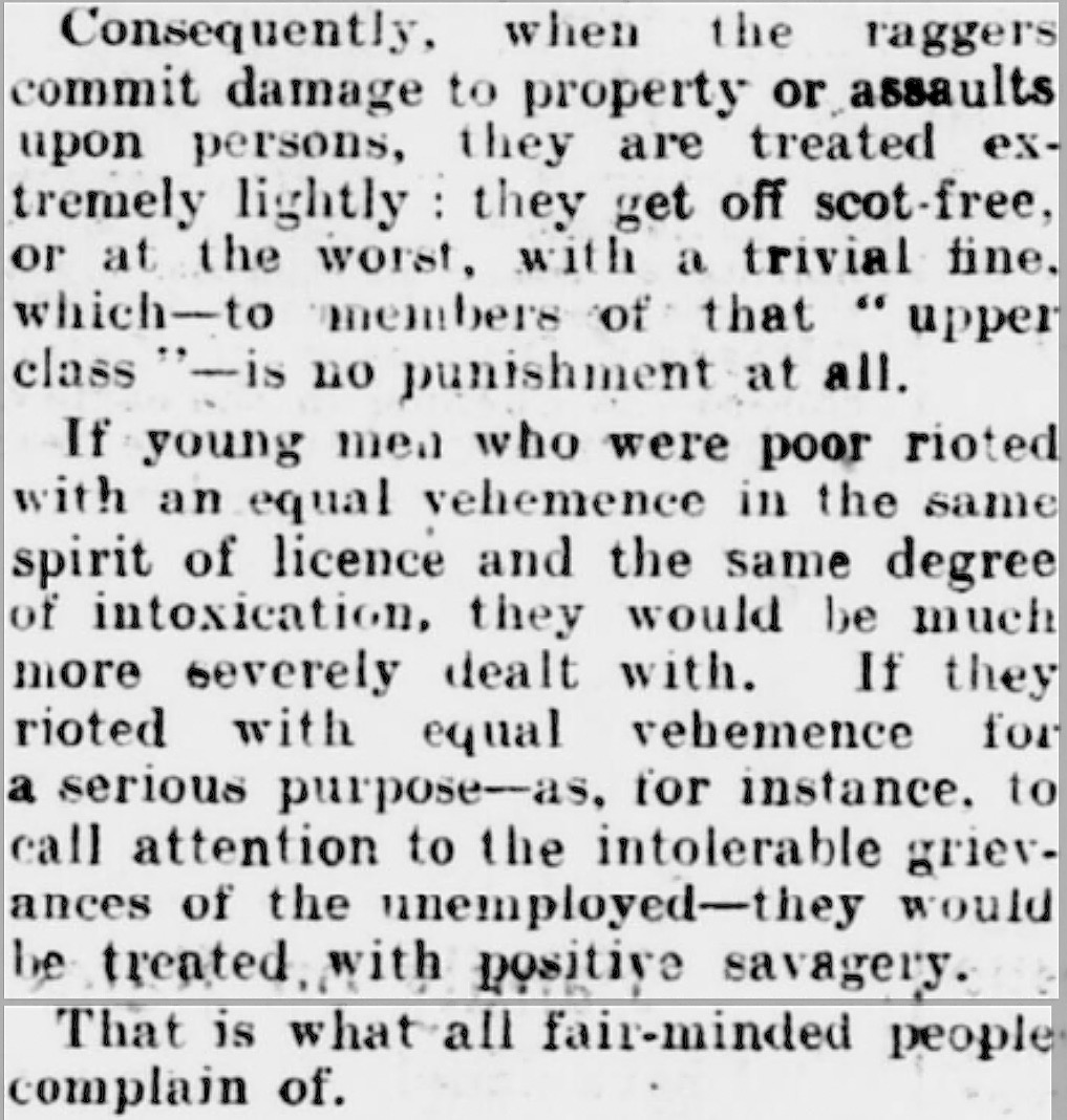 The truth, however, may not have been stranger than fiction but it was often less amusing. The latitude often given to the minority (students and others) who committed quite serious offences on Boat Race Night was disgraceful.