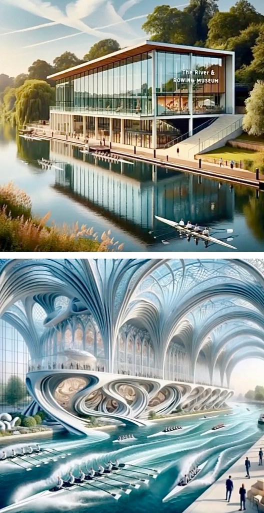 I recently reposed some illustrations from the River and Rowing Museum’s X/Twitter account in which the question was posed, “What happens when you let #ChatGPT loose on the design of the River and Rowing Museum?” The results were a bit of harmless fun with AI, responding to increasingly demanding prompts, producing increasingly ludicrous images of what a rowing museum should look like. However, it should have been expected that, if you ask progressively more stupid questions, you will get progressively more stupid answers. But, if stupid answers are not what you require, human oversight is needed. I recently found an example of where unintentionally ludicrous AI generated images were clearly not checked by any carbon based life form.
