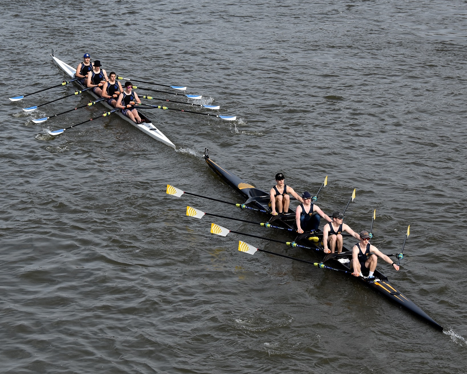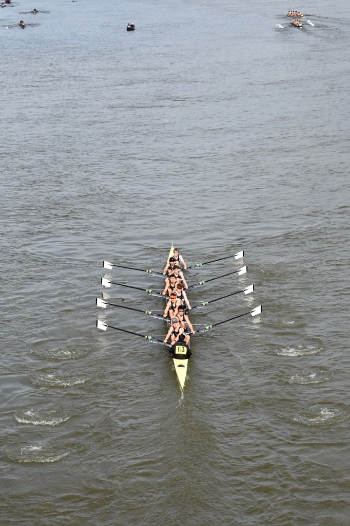 Hinksey Sculling School, 14th in Boys’ J16 Championship Eights.Marlow RC, second in Boys’ Championship Quads.Hereford Cathedral School (below) chase Hinksey Sculling School in Boys’ Championship Quads. They finished 14th and 3rd respectively.Kew House School Boat Club, second out of three in School 1st J16 Eights.Shiplake College, second in Girls’ Championship Eights. Hinksey Sculling School, third in Girls’ Championship Eights. Wallingford RC, ninth in Girls’ Championship Eights.Abingdon School, fifth in School/Junior 2nd J16 Eights.St Paul’s Girls School (passing the halfway post at St Paul’s Boys School) racing in Girls’ J16 2nd Eights where they were fourth out of five.Shrewsbury School returns to St Paul’s School ramp after racing in Girls’ Championship Eights, coming 11th.Latymer Upper School returns to their pontoon after winning Girls’ Championship J16 Eights.
