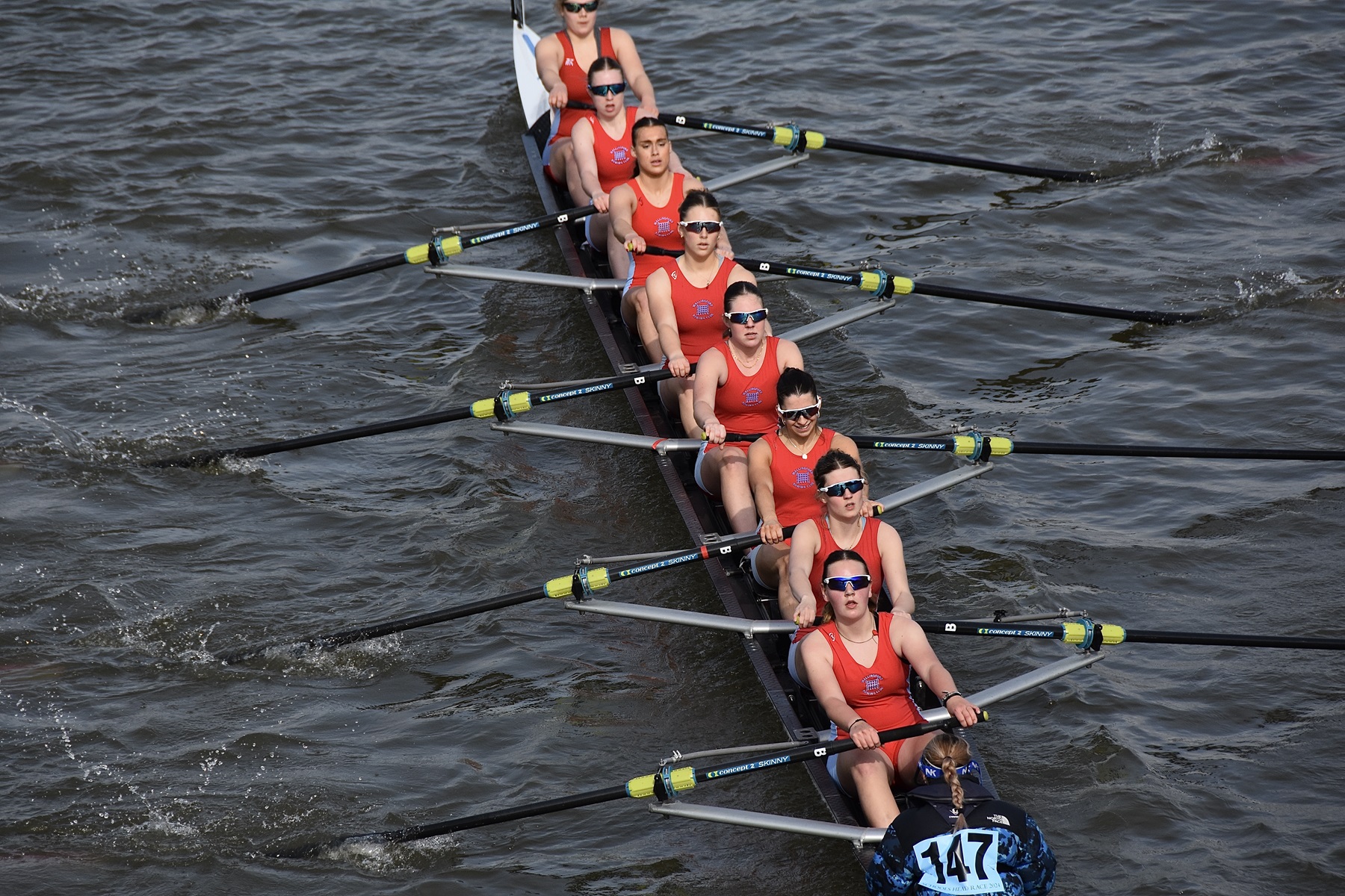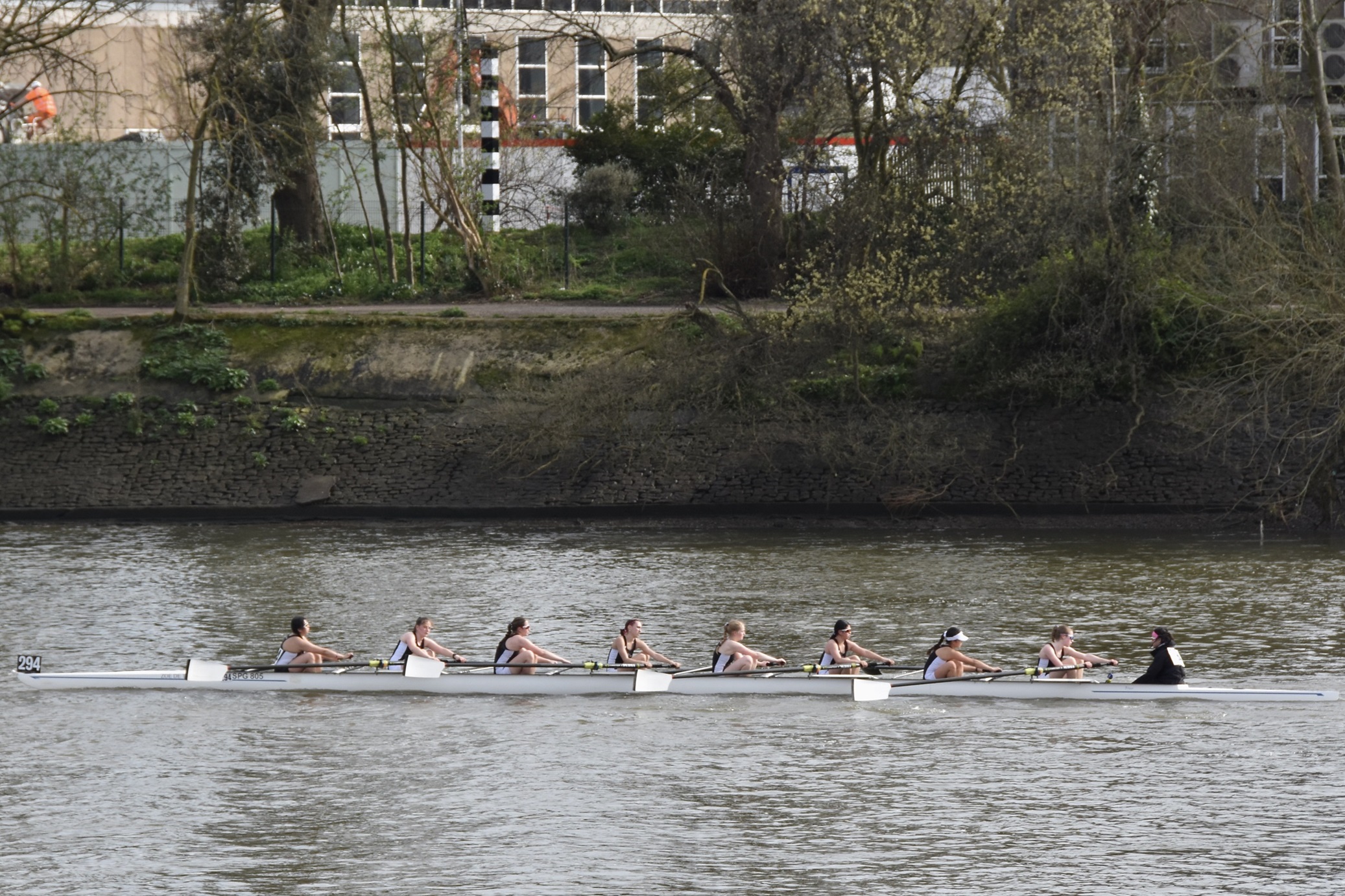 The Schools’ Head of the River Race (SHORR) began in 1946 making it the UK’s largest school-age head race, one that is usually for crews aged between 14 and 18 years old. Juniors from open clubs as well as school crews may take part. This year, the strong stream resulting from recent rainfall meant that only crews aged 16 and above could take part but the large volume of water coming down also made for fast times in this event run on the outgoing tide. The 300 remaining boats enjoyed weather that was uncharacteristically benign compared to recent days with warm, dry and calm conditions.
