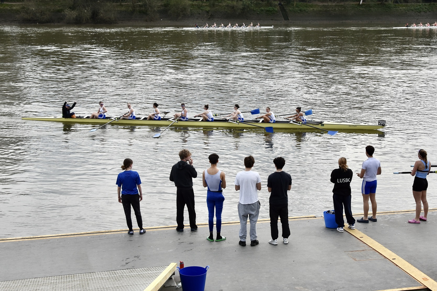 At various times in the past, coxed and coxless fours took part but this year only eights and coxless quad events were offered. Starting at Mortlake, the finish is at the Westminster School BC in Putney, so the course is very slightly shorter than the traditional Championship Course.