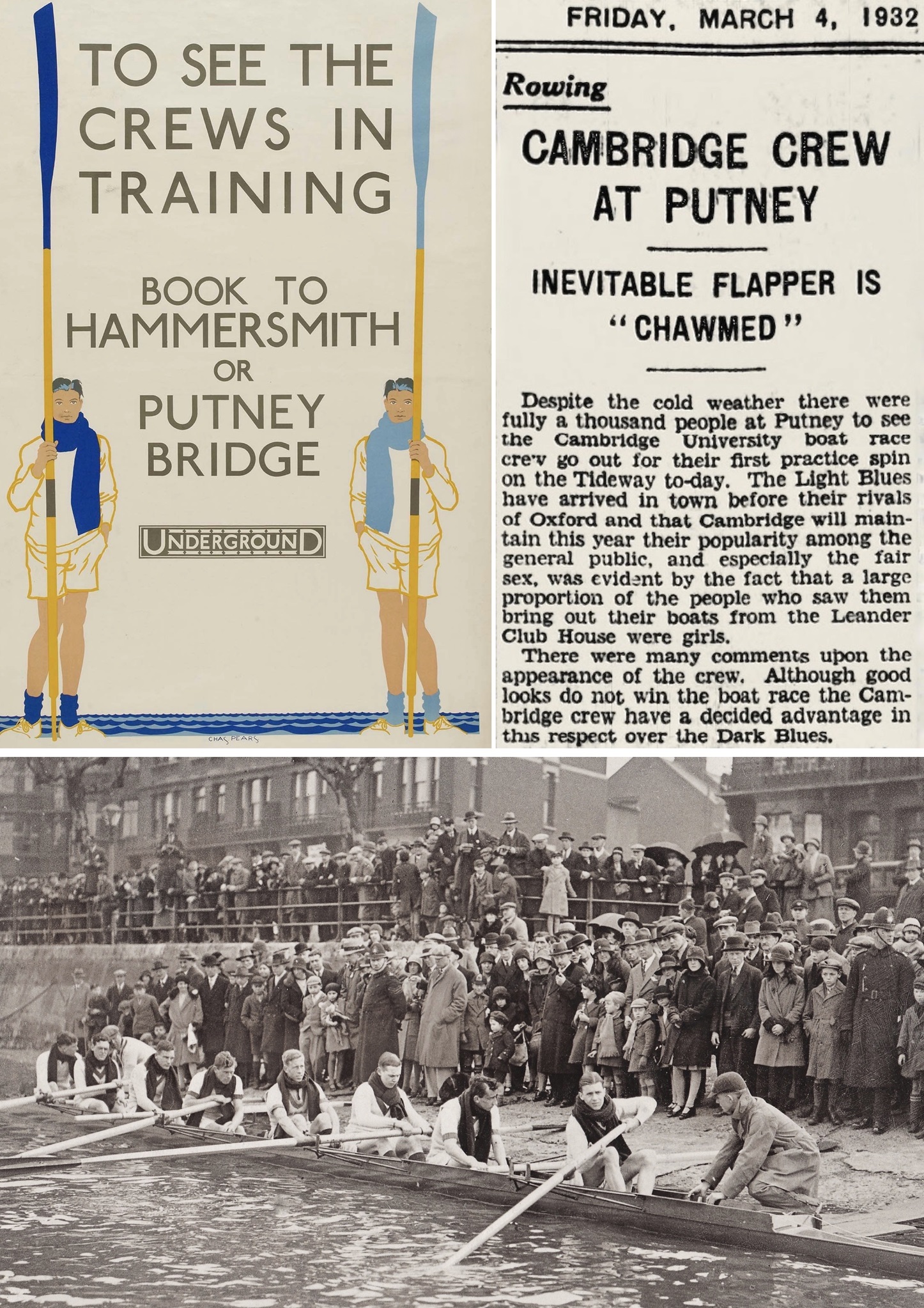 During Tideway Week, the seven (or more) days before Boat Race Day, the crews are living in or near Putney and go out on the river twice a day for light paddling and practice starts, their hard training now behind them. On the plus side, the water work is physically undemanding and the land work is the ever popular eating and sleeping. On the minus side, it could be a time when negative thoughts intrude.