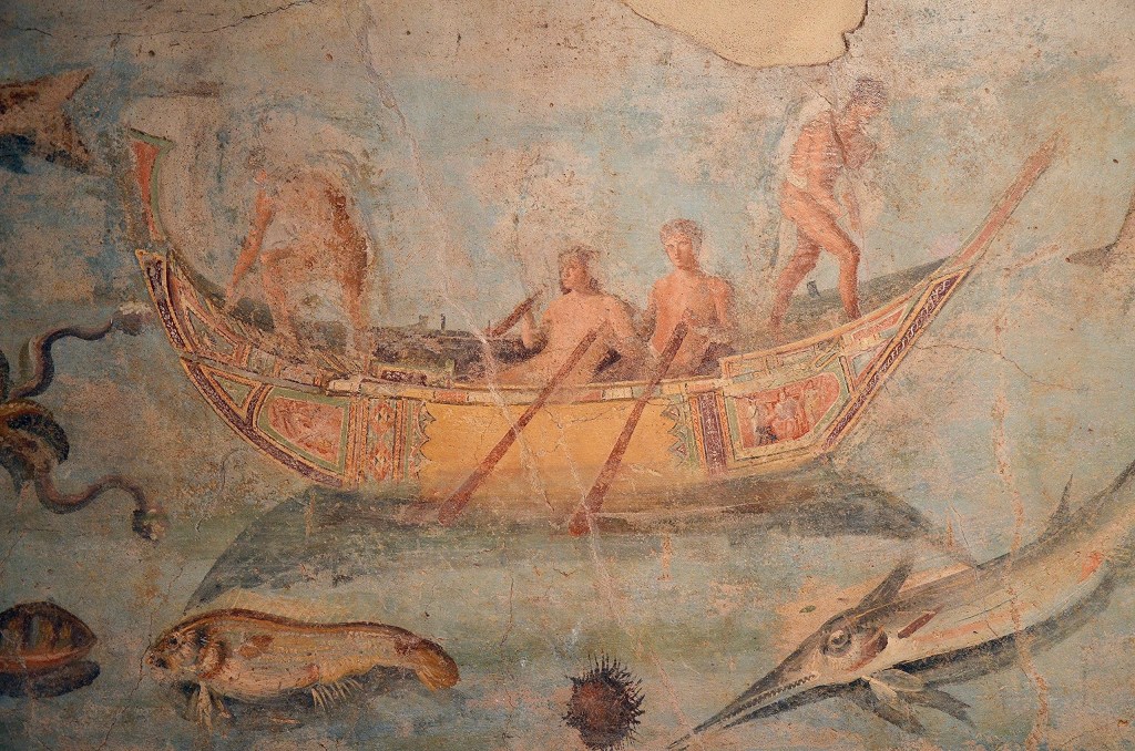 News that stunning frescos have been uncovered in a new excavation at Pompeii, the ancient Roman city buried in a volcanic eruption from Mount Vesuvius in AD79, reminded me of some other Roman wall paintings, ones of interest to HTBS Types. They were produced around one hundred years after Vesuvius and were found on the via La Portuense in the river port of San Paolo, Rome.