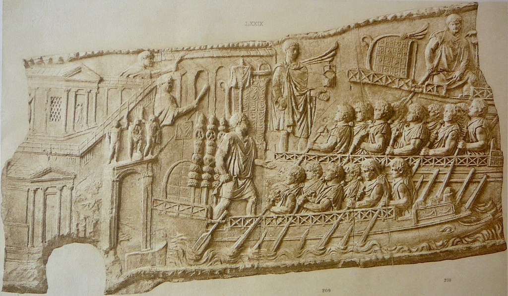 Below is a rather more modern picture (1890) by Sir Edward Poynter. It is a rather fanciful depiction of a Roman boat race inspired by one translation of a quote from The Aeneid, the epic poem completed two decades before Christ: Four ships from all the fleet picked out will first the race begin with heavy oars.