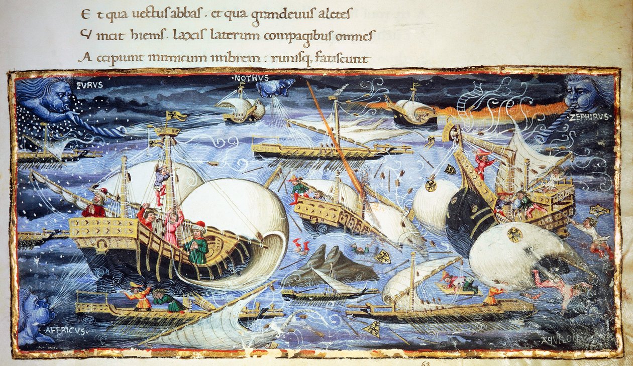 Thus, Cloanthus’ Scylla comes in first, followed by Mnestheus in Pristis, Gyas in Chimaera, and with Sergestus bringing up the rear in his disabled Centaur.