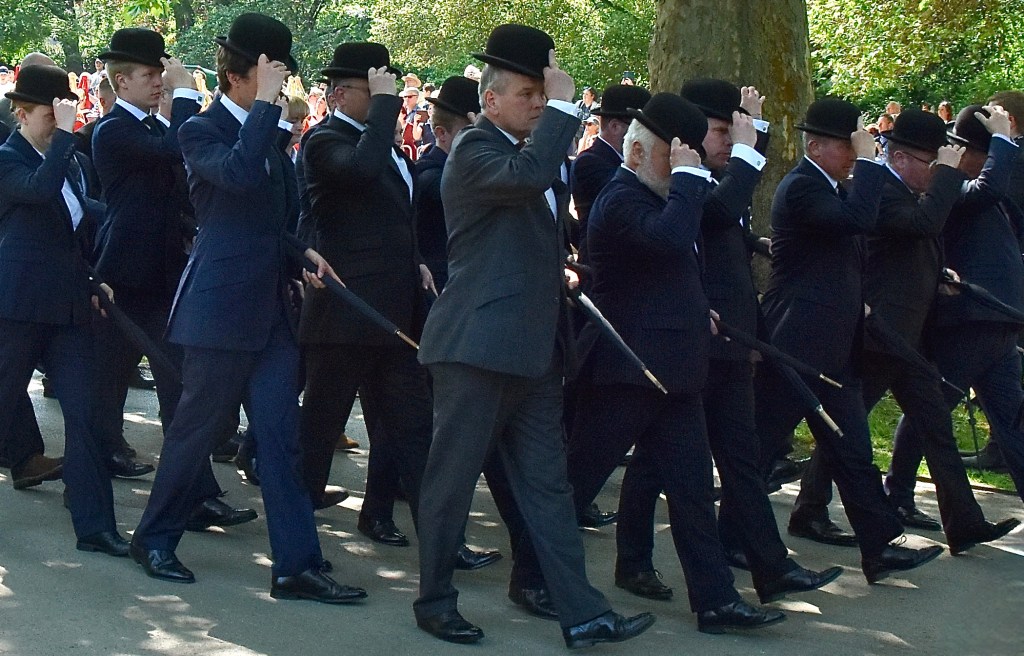The QRH are the only regiment on parade that sings its regimental song as it passes the saluting base.I’m a soldier in the King’s Army / I’m a galloping Queen’s Hussar / I’ve sailed the ocean wide and blue / I’m a chap who knows a thing or two / Been in many a tight corner / Shown the enemy who we are / I can ride a horse / Go on a spree, or sing a comic song / And that denotes a Queen’s Hussar.