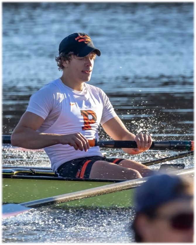 So many to choose from but notable WBSBC old boys include Marcus Chute from the 2022 winning Fawley quad who has moved to the sweep ‘dark side’ and now rows for Princeton University. Good move; the big “P” won the Ladies’ Challenge Plate at Henley this year with Marcus in the crew. En route to 2024 Marcus set the WBSBC 5K erg record, won in the single scull by a whole minute at the 2021 GB Junior Trials, won Gold in the men’s singles at the 2022 National Schools’ Regatta, won Gold in the men’s singles at the 2022 European Rowing Championships (under-19s). The same year, recovering from Covid post-Henley, he came a creditable fifth in the men’s singles at the World Rowing Championships and was shortlisted for SportsAid ‘One-to-Watch’ award. 2022; certainly an ‘annus mirabilis’ as the Emperor Marcus would say of Marcus the Sculler and the Windsor Boys’ School Boat Club.