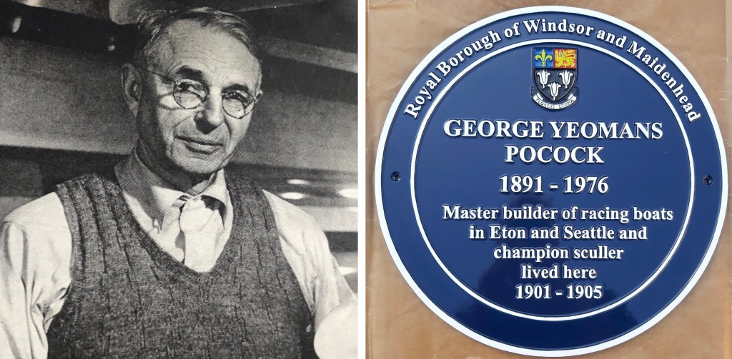 Last October, in a post titled Pocock Plaquery, Thomas wrote that research revealed that in 1901, the 10-year-old George Pocock was living with his siblings and widowed father Aaron at number 78 Eton High Street, only a stone’s throw from the River Thames and Eton College’s ‘Rafts’ boat house where Aaron worked….