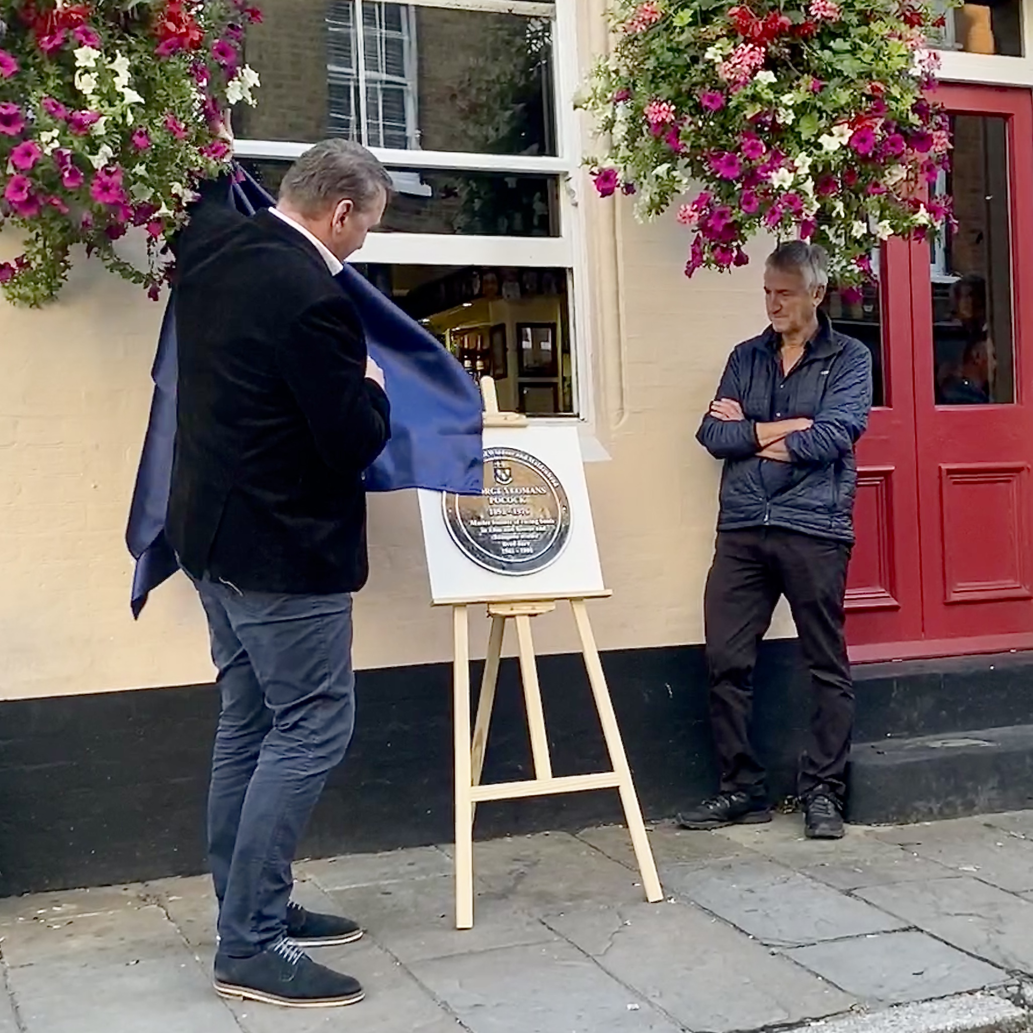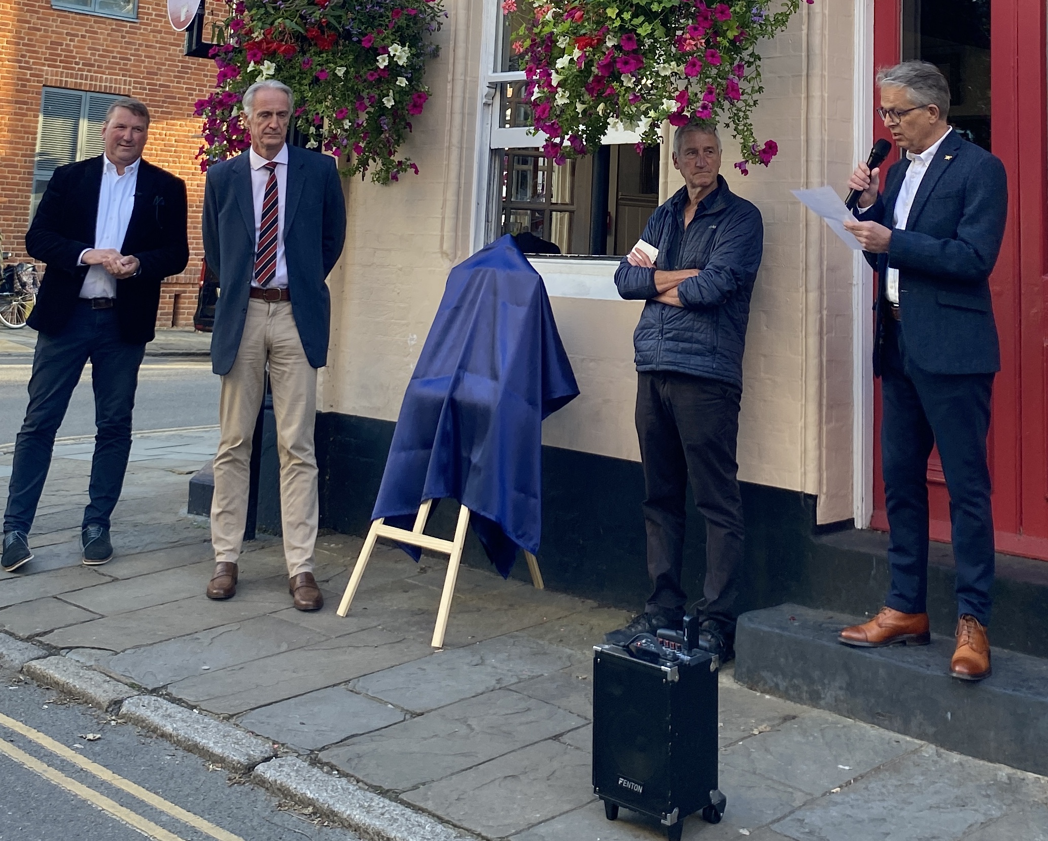 On the evening of 13 September, about one hundred people gathered outside the George Inn in Eton High Street. The plaque had not yet been affixed to the wall and stood on an easel on the pavement outside the pub. The master of ceremonies was James Marshall, the Captain of Eton Excelsior Rowing Club. First, he introduced the man who had made it all happen, Thomas Wigley.