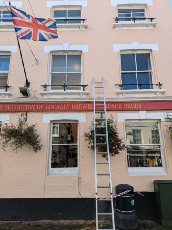 The author is pleased to announce the safe delivery in Eton by the George Inn of a baby blue plaque which weighed-in at a healthy fifteen inches yesterday at 14:20 BST. Pub and plaque are both doing well.