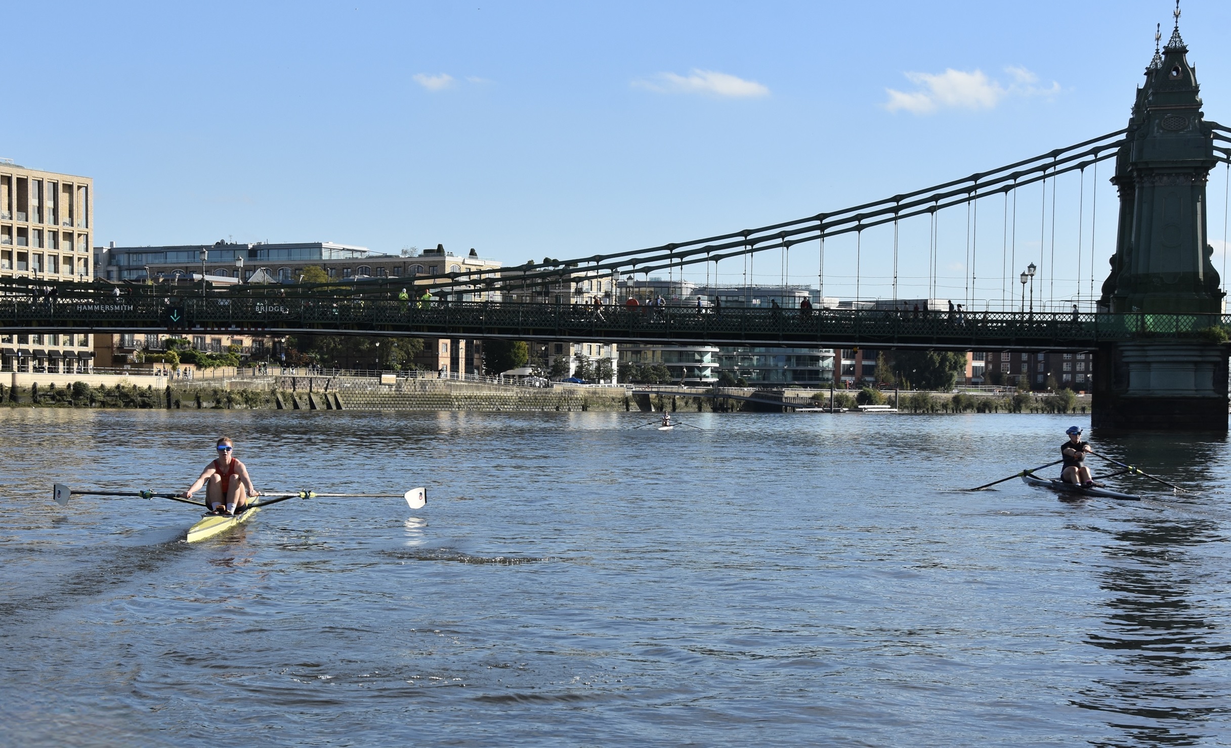 Between Barnes Bridge and Chiswick Pier, Grant continued to edge away, leaving Mole and Stratton to fight for second place – which they did.
