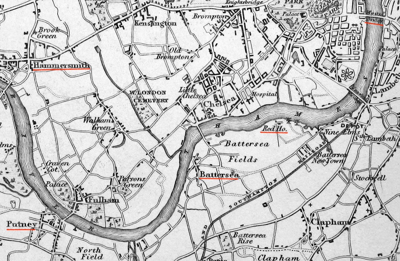 In 1848, the course was changed to run between Putney Bridge and Kew Bridge (this must have been the second Kew Bridge of 1789, today’s third span dates from 1903).