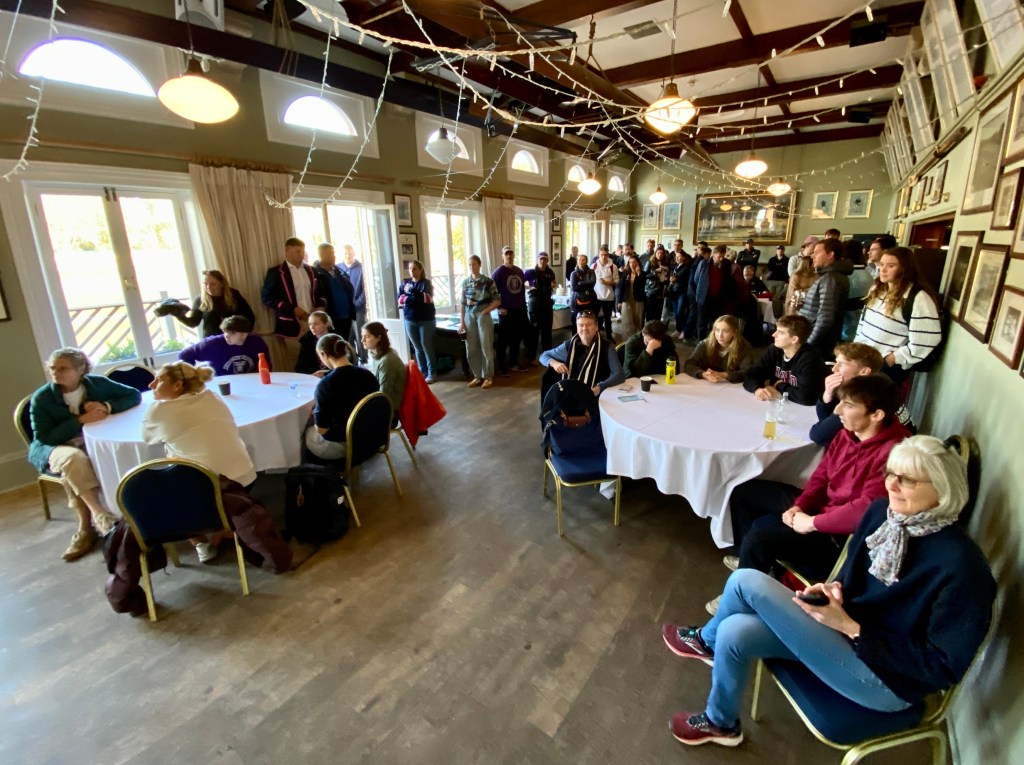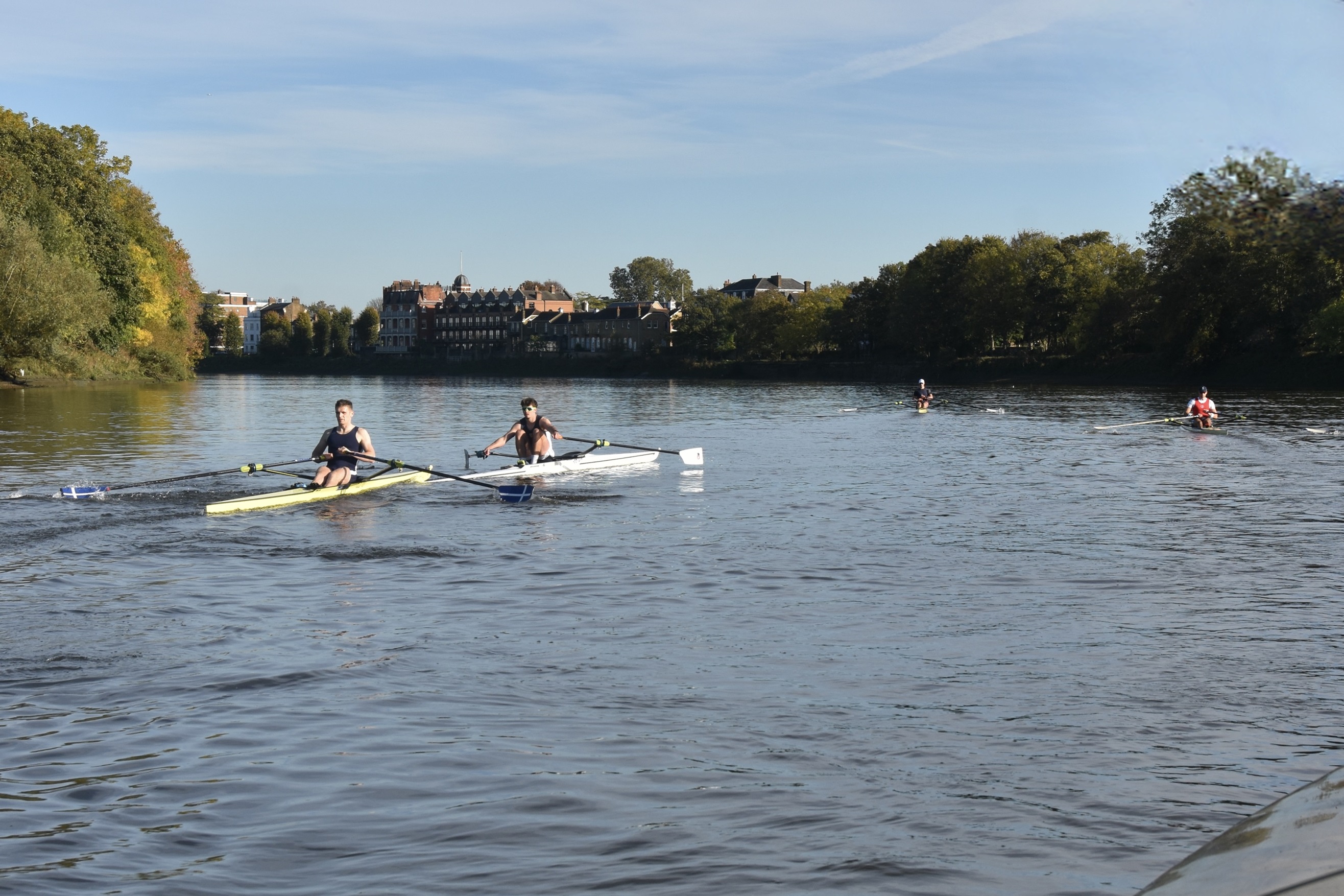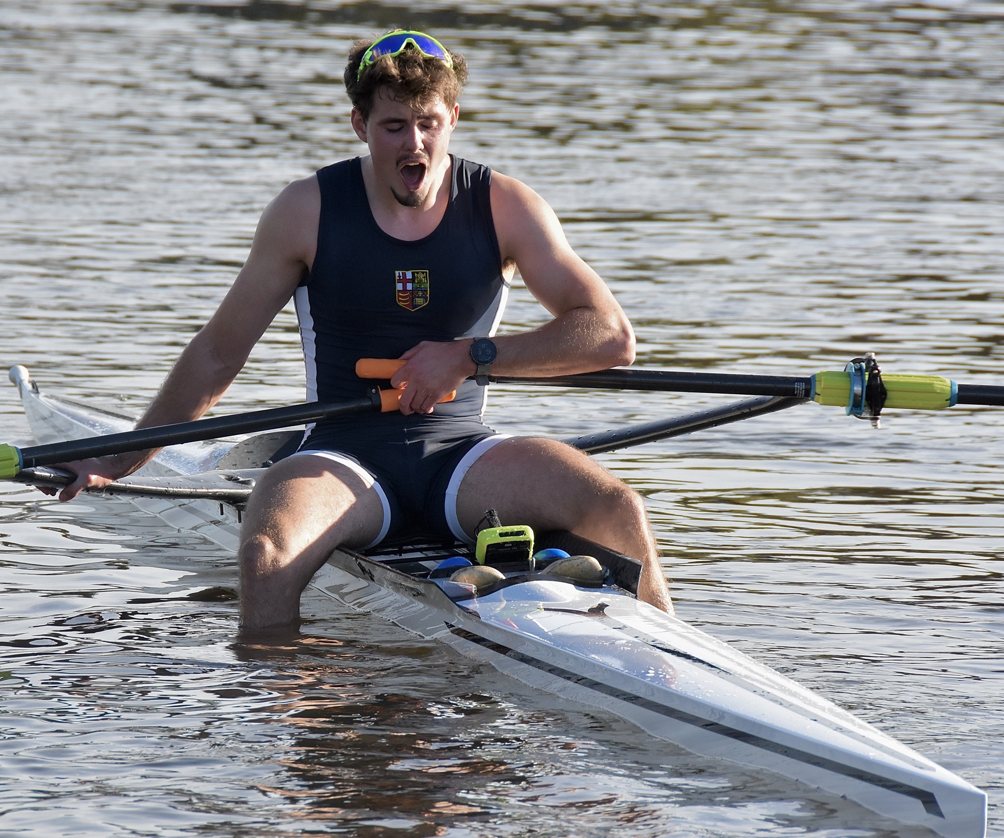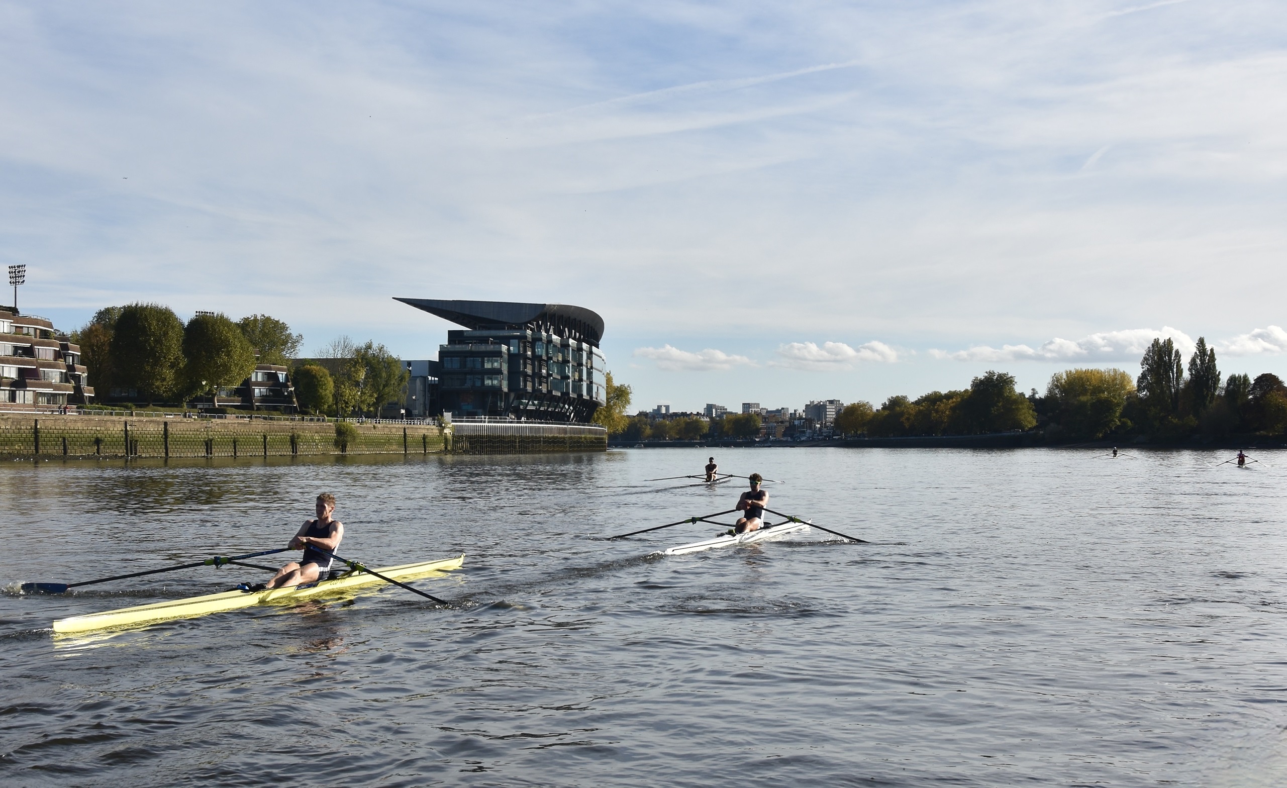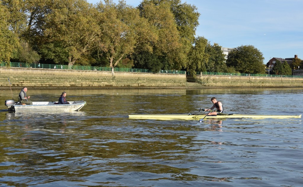 Off the start, it was Lyon in front followed by Thomas, Parsonage, Dixon and then Xu. However, Dixon soon took the lead and reached Chiswick Bridge (pictured) in 3min 06 sec. Left to right here are Dixon (1st), Lyon (4th), Thomas (2nd) and Parsonage (3rd). Xu (5th) is out of shot.Although an experienced Tideway sculler, Xu mostly stayed close to the Middlesex shore until well past Chiswick Bridge and was far down on the rest of the field for some time.Between Chiswick and Barnes Bridges, the order was still, left to right, Lyon (4th), Dixon (1st), Thomas (2nd) and Parsonage (3rd). Xu (5th) is out of shot.One minute after the previous picture was taken, Lyon passed Parsonage and took his third place.Approaching Barnes Bridge, Xu, who had fallen over a length behind off the start, began to challenge Parsonage for fourth place. Left to right here are Xu, Parsonage, Lyon, Thomas and Dixon.Xu (foreground left) closes in on Parsonage (foreground right).Leader Dixon reached Barnes Bridge in 6min 54sec. He was followed by Thomas, Lyon, Xu (now in fourth place) and Parsonage.Low in fat, big in muscle: Rui Xu (pronounced something like “Rooee See”).Passing the Bandstand on Dukes Meadows, Chiswick. Left to right: Parsonage, Xu, Lyon, Thomas and Dixon.Between Chiswick Pier (pictured) and Chiswick Eyot, Xu (middle right) overtook Lyon (middle left) to take third place.Near St Paul’s School, Graeme Thomas takes evasive action. Despite his creditable finish position, Thomas seemed out of form.At Hammersmith Bridge, the order was Dixon, Thomas, Xu, Lyon and Parsonage. Dixon reached the bridge in 16min 11sec.In Fulham Reach, it is Dixon (1st), Thomas (2nd), Xu (3rd), Lyon (4th) and Parsonage (5th). Dixon passed the Mile Post at 19min 56sec.The competitors’ steerers follow behind the umpire.The leader, Dixon, reaches Fulham Football Ground while the others follow in his wake.Pictured at the finish is Dixon (1st, 23mins 46sec), Thomas (2nd) and Lyon (4th). Out of shot are Xu (3rd) and Parsonage (5th).Josh Lyon recovers.Ben Parsonage with his trainer, Peter Haining (left). Haining was Wingfields Champion four times (1994, 1995, 1996, 2000), he competed in the 1992 and 1996 Olympic Games and was World Lightweight Single Sculling Champion, 1993 – 1995. He was the first to complete the Wingfields over the Championship Course in under twenty minutes.Callum Dixon, the new Champion of the Thames, with Team Dixon.The London RC boys, Rui Xu and Josh Lyon.The Long Room at London RC, ready for the prize giving. Changing the course to finish at the accessible Putney Embankment (as opposed to the inaccessible Tideway Scullers’ Chiswick boathouse) coupled with holding the event on a Sunday (not a weekday as has been traditional) produced a much greater turnout of spectators and supporters. While the tides may not allow this direction every year, the change was regarded as a success by all concerned.The women’s prize (left) and the men’s prize (right). Winners have a choice of scarf or tie. First time winners get a medal and year bar to go on their medal ribbon and second time and subsequent winners get a year bar to go on their existing medal ribbon.Wingfield’s Secretary, Sam Meijer (2019 Champion), has continued the enthusiasm of his predecessor, Wade Hall-Craggs, for preserving and adding to the Wingfield’s paper archive.