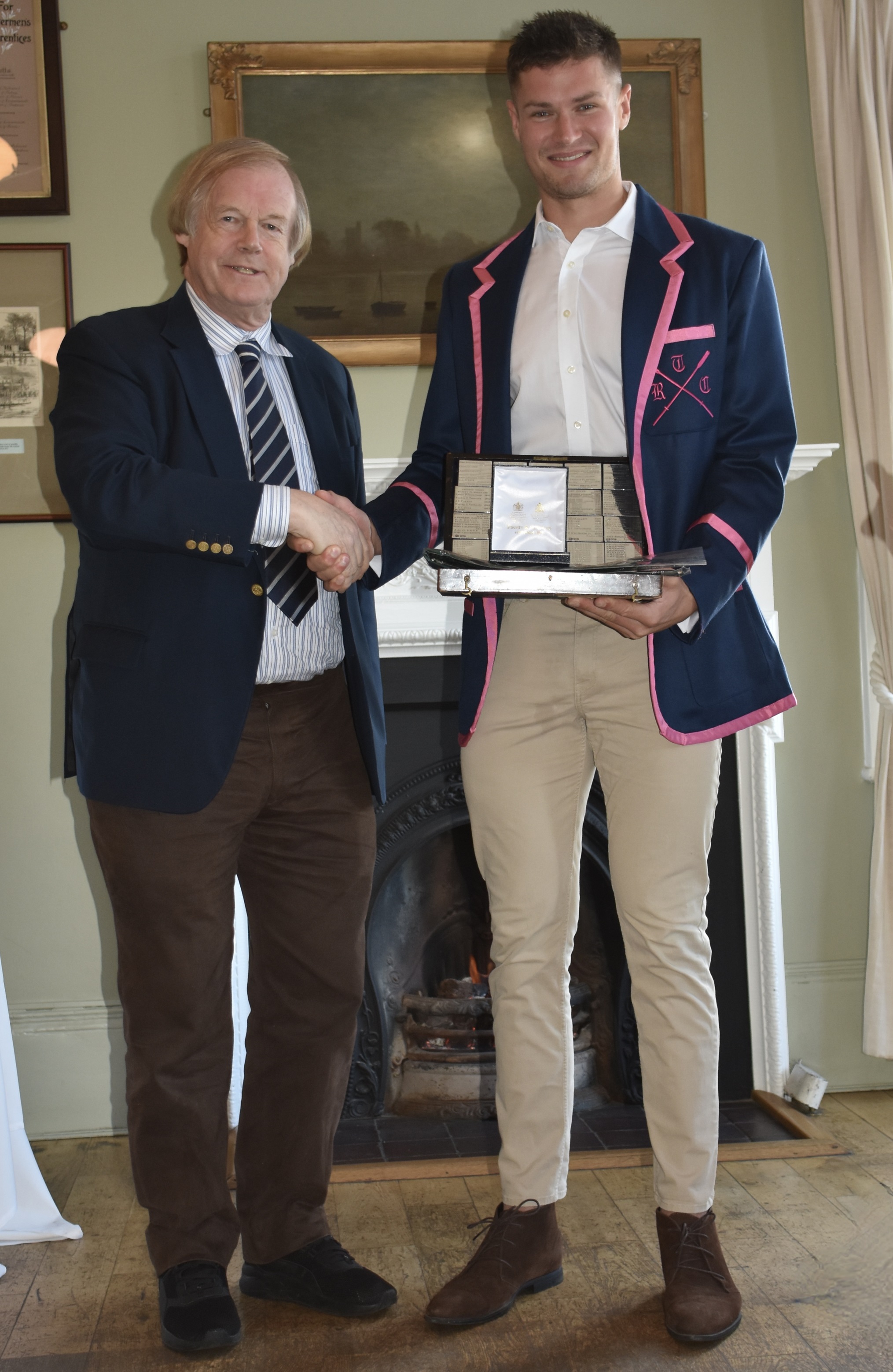 Sir David Wootton (left) presents Callum with the Wingfield Silver Sculls. The two-metre-tall Twickenham RC member has been rowing since 2019 and is training for the 2028 Olympics.