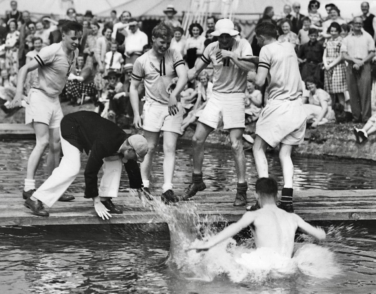 The Royal Air Force Rowing Club celebrating at Henley in 1953. Here, some crew members are in the river but the cox was clearly not the first choice for an early bath. Perhaps the fact that these days coxswains wear quick drying lycra rather than heavy flannel may be responsible for the modern popularity of immersing coxswains. Picture: Facebook/@henleyroyalregatta.