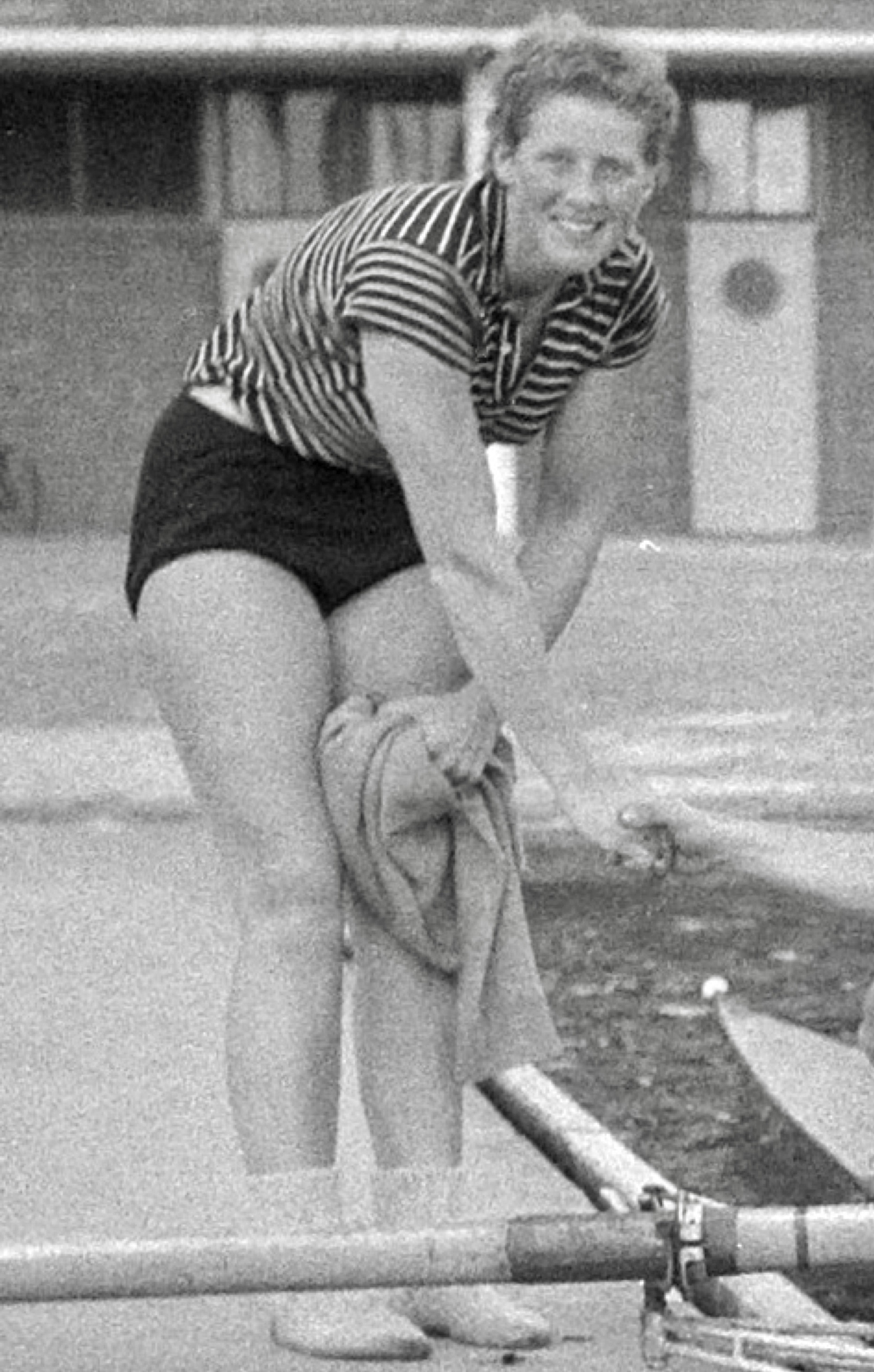 Penny aimed to compete in the 1960 Olympics in Rome until she found out that Olympic regattas were for men only. She won a silver medal in 1962 at the women’s European championships, her best result in five entries from 1960 to 1964. With no money and minimal support from the ARA, she travelled alone to east European regattas carrying her oars into Berlin’s Soviet zone through Checkpoint Charlie. When opportunity arose she travelled with Sam who was then the superman among world scullers and whose car’s roof rack contraption was large enough to carry two boats.