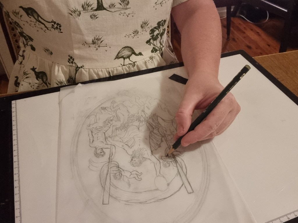 “I ended up opting for an archival quality gouache. However, I did my research and the gouache I opted for from my supplier (and the pigments of those) are in line with what artists in the Middle Ages were beginning to use. I made sure the change of materials was nonetheless still as close as possible to the time period of references I’d used,” she said.