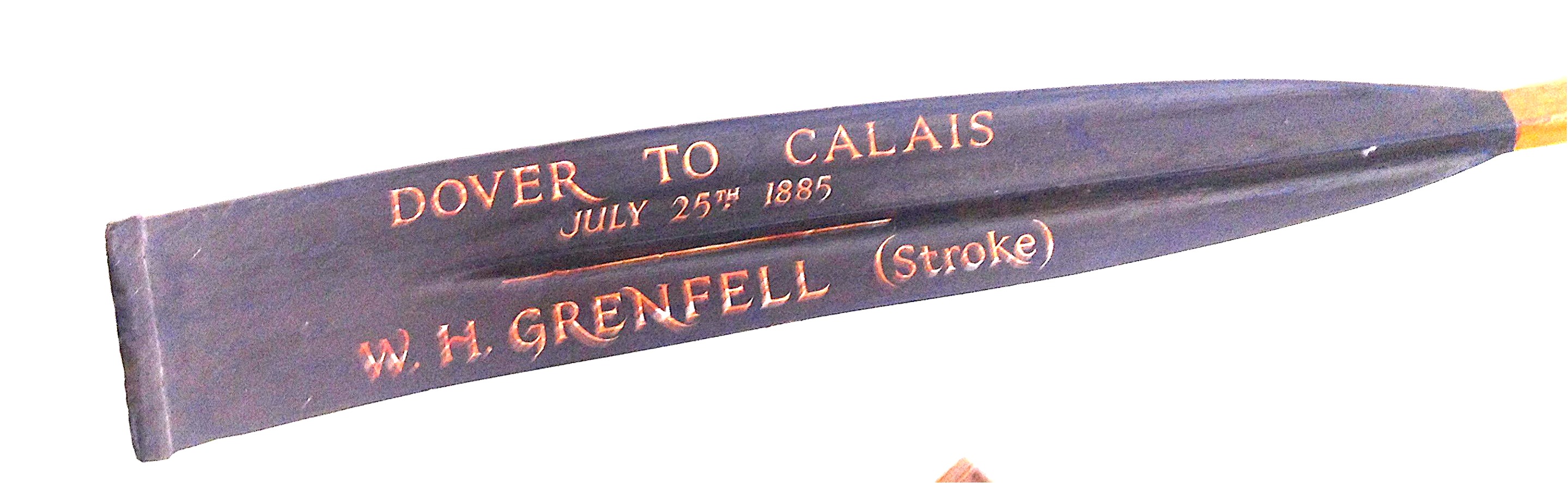 Grenfell’s crew had travelled roughly twenty-seven miles in a time of approximately 4 hours and 20 minutes. And nobody had needed to swim!  Without doubt other crews in similar boats have made this crossing and it would be helpful to put this particular crossing in context. However, Grenfell and his crew did well considering the difficulties they faced and for a brief moment in 1885 it drew considerable attention. Grenfell retained the oar he used and had it inscribed. It now hangs in Maidenhead Rowing Club.