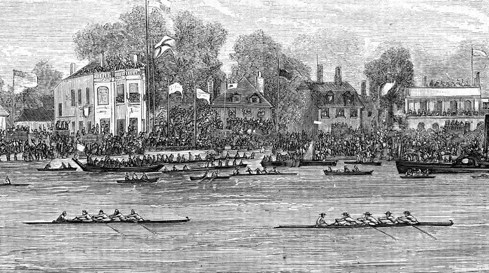 Edward H. Jones, who on February 3 told the story of the African American professional sculler Frenchy A. Johnson, writes about an eyewitness account of “The Great International University Boat Race” between Harvard and Oxford Universities on the River Thames in 1869.