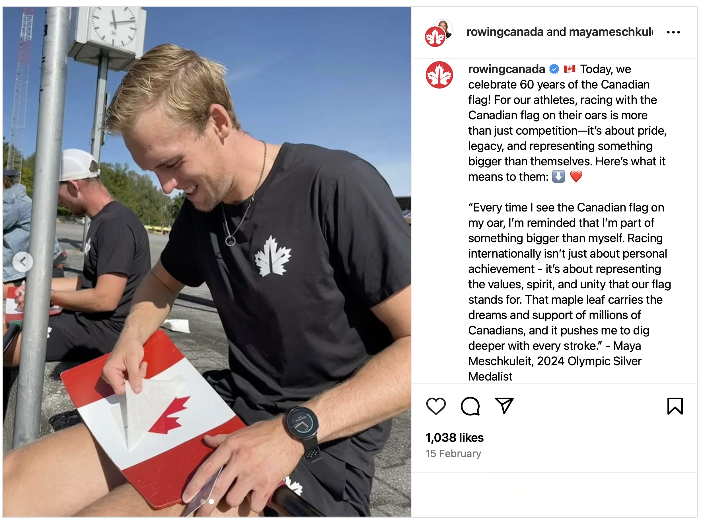While it is common for many rowing countries to display their nation’s flag on the oars of their national team, Canada has a unique tradition in that the maple leaf is only displayed at the two most important international rowing events: the Olympic Games and the season ending World Championship Regatta. There is no other regatta where the maple leaf is on a national team member’s oar, not even for the Rowing World Cup circuit races.