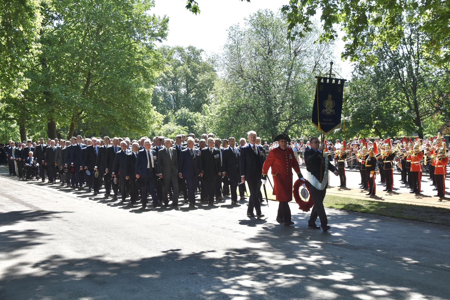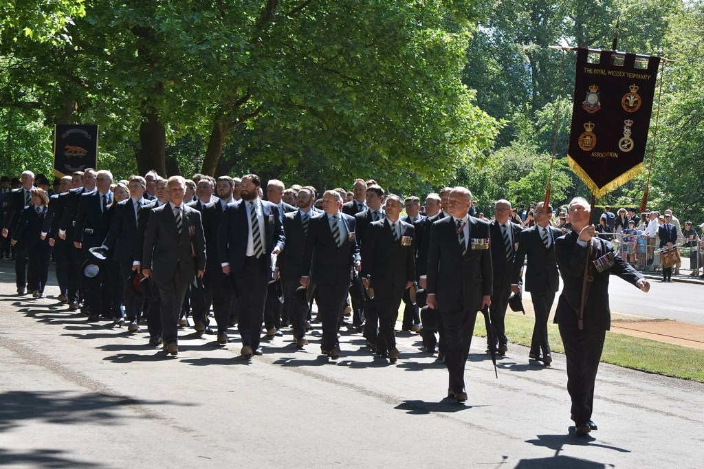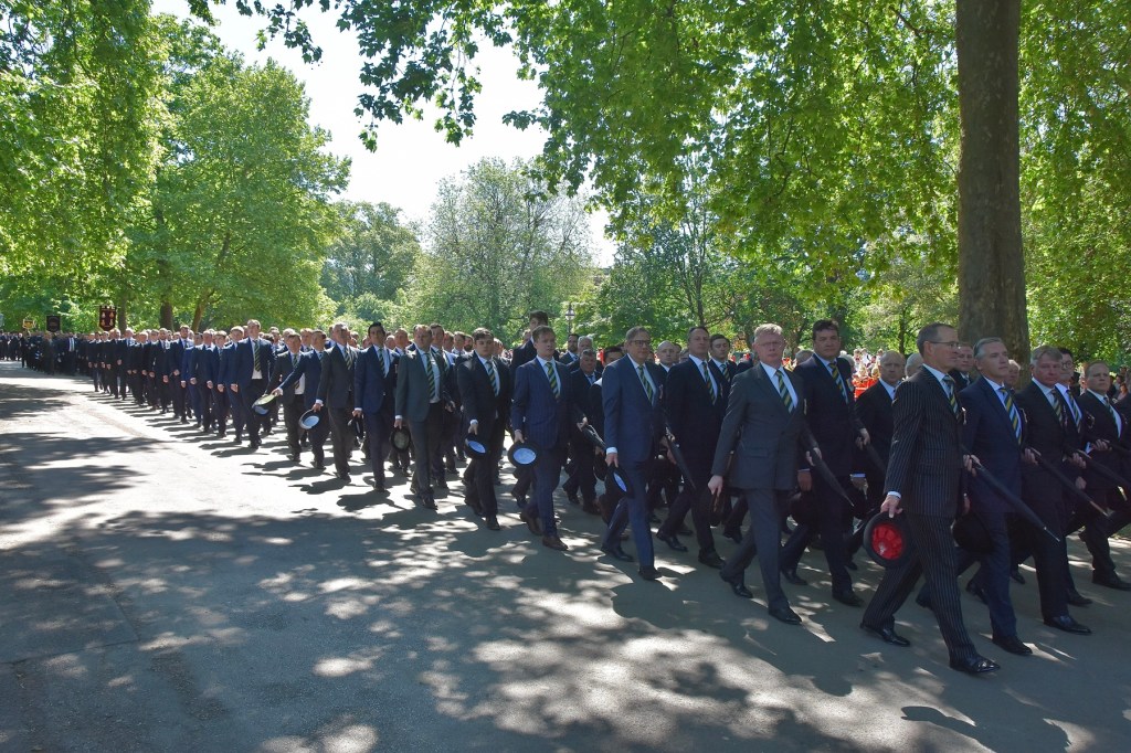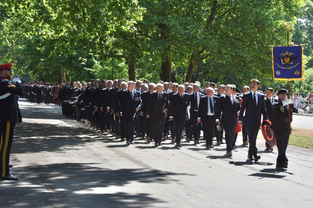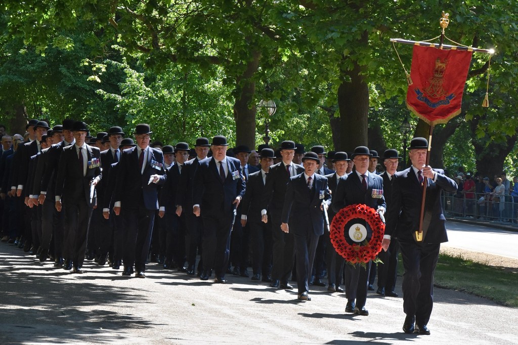 Pictured on 11 May, the Combined Cavalry Old Comrades Association’s banner leads its annual parade to remember cavalrymen killed in action since 1914. It is followed by four members of this year’s sponsoring regiments, The Queen’s Royal Hussars, carrying the Association’s wreath. Behind them are dismounted serving members of The Life Guards and The Blues & Royals, collectively the Household Cavalry. They will be followed by regimental associations in strict order of precedence.