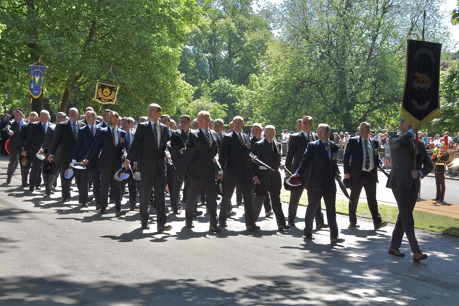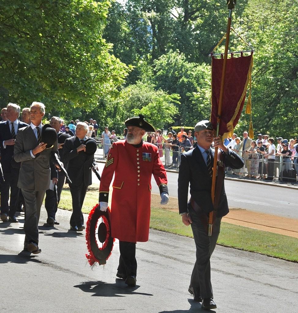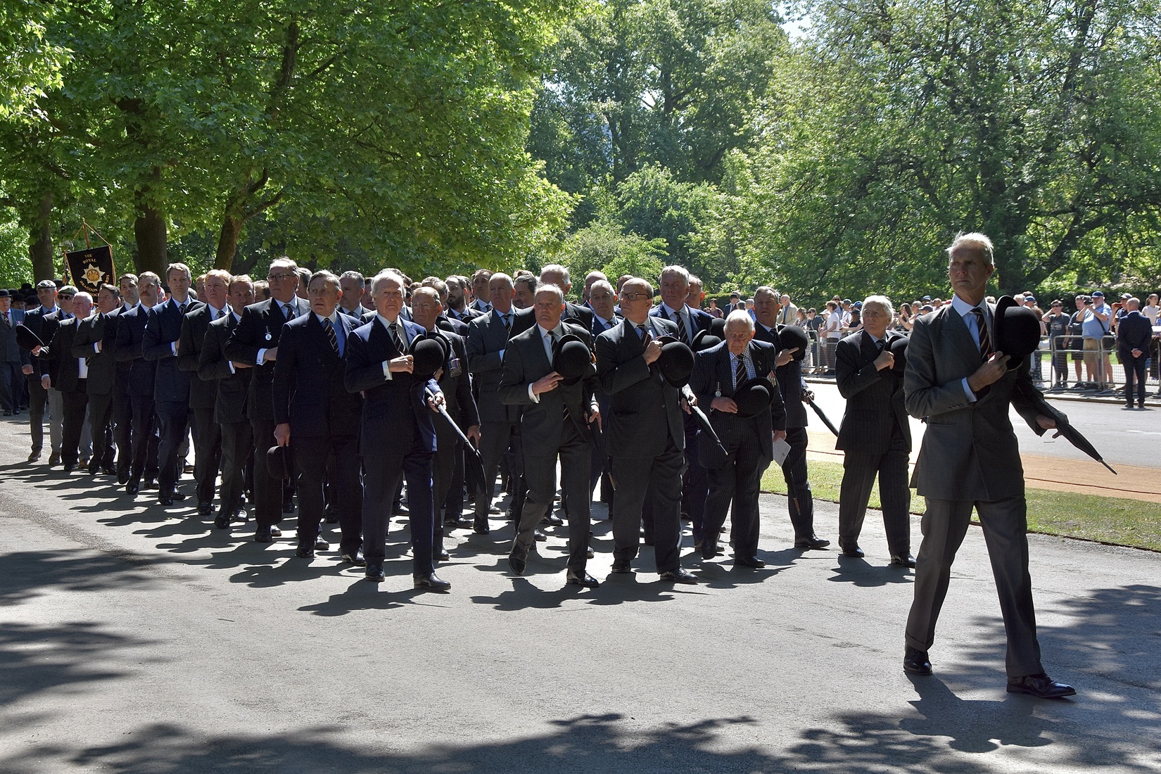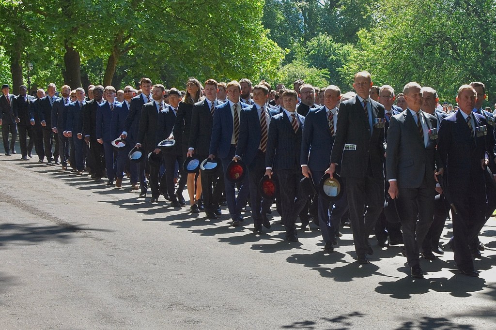 Pictured on 11 May, the Combined Cavalry Old Comrades Association’s banner leads its annual parade to remember cavalrymen killed in action since 1914. It is followed by four members of this year’s sponsoring regiments, The Queen’s Royal Hussars, carrying the Association’s wreath. Behind them are dismounted serving members of The Life Guards and The Blues & Royals, collectively the Household Cavalry. They will be followed by regimental associations in strict order of precedence.