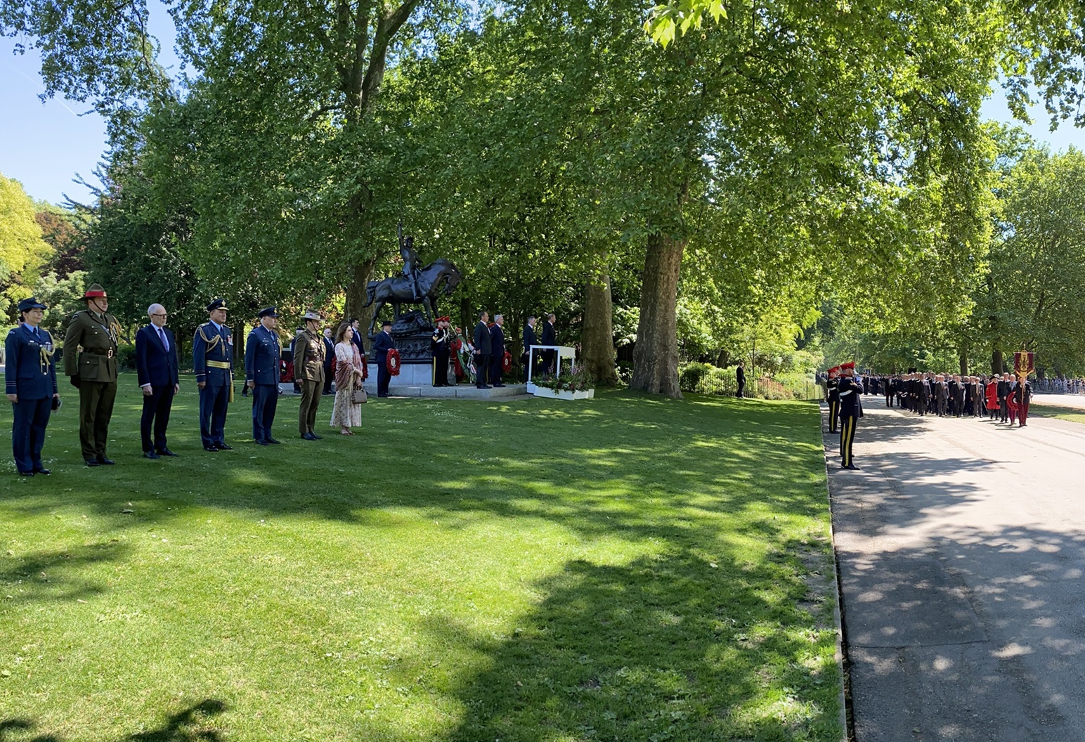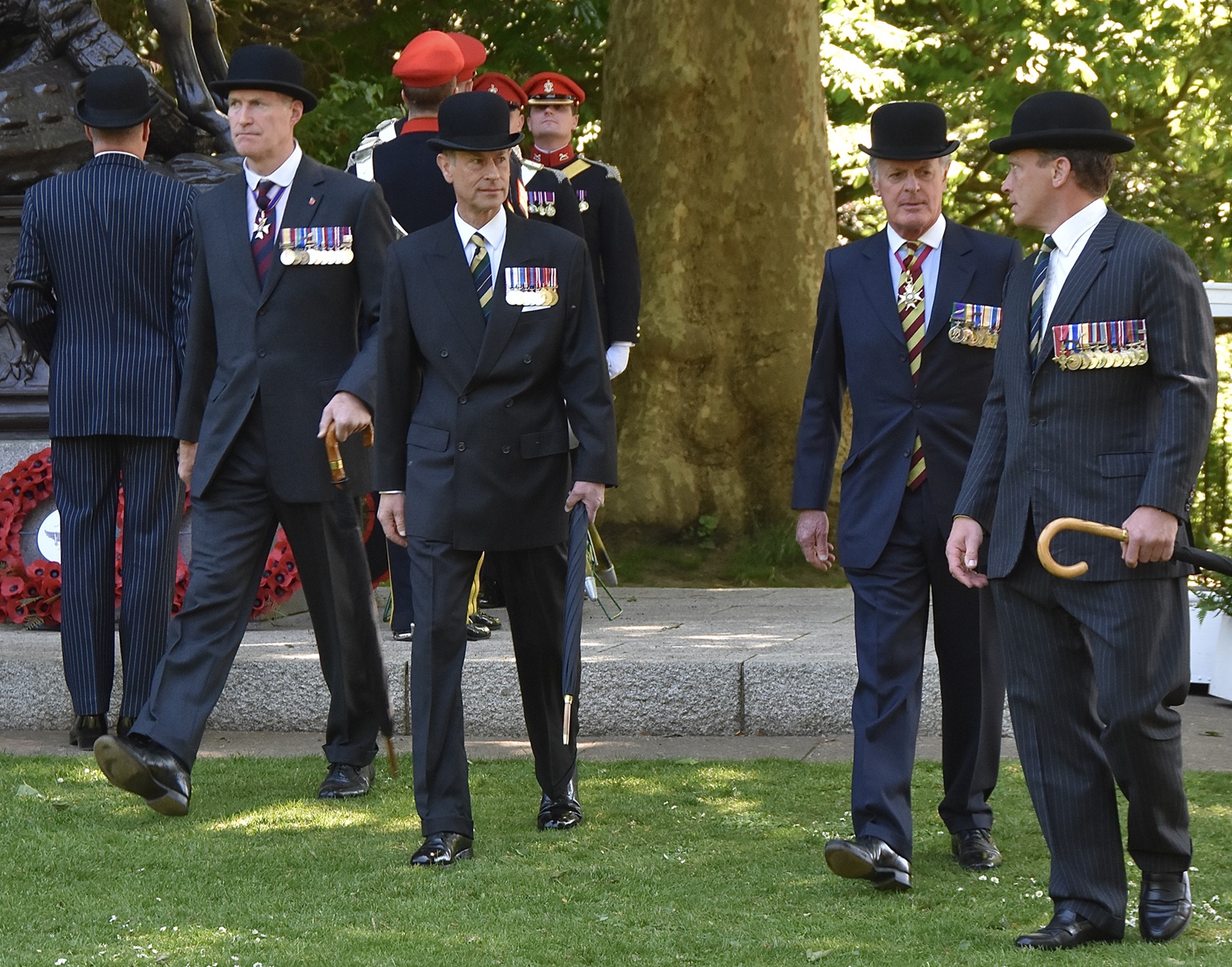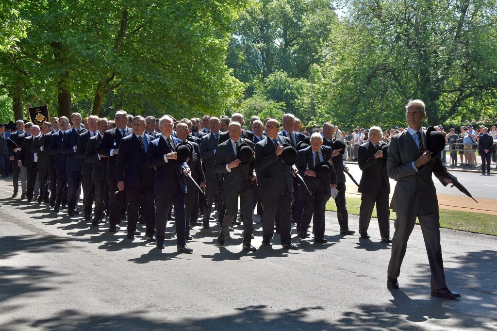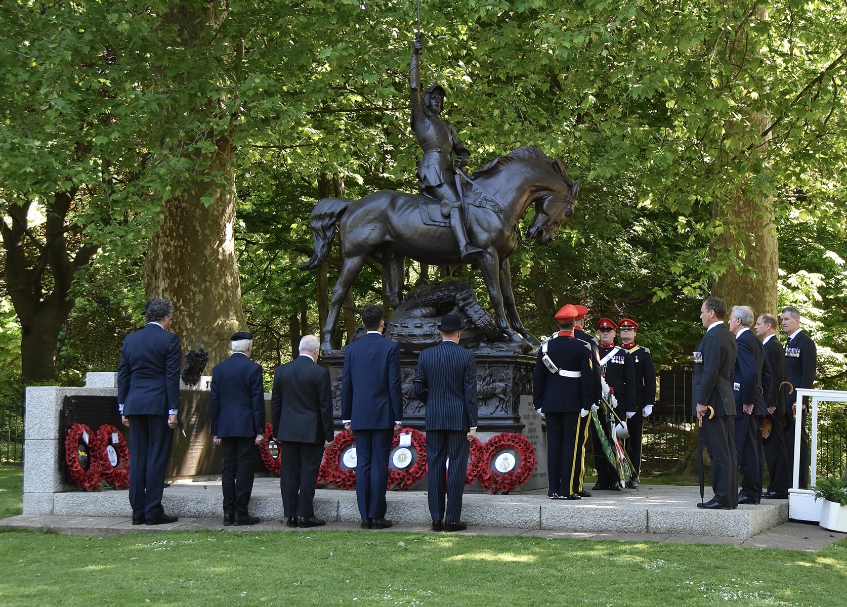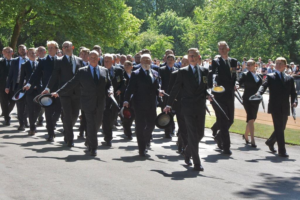 Prince Edward lays the Combined Cavalry Old Comrades Association’s wreath on the Cavalry Memorial, the monument already adorned with the wreaths of individual regimental associations.Lieutenant-General Sir Edward Smyth-Osbourne (President of the Old Comrades), Prince Edward (Colonel-in-Chief of The Queen’s Royal Hussars), General Sir Richard Shirreff (Vice-Patron of the Old Comrades) and Major-General Nick Cowley (Colonel of the Queen’s Royal Hussars and 2025 Old Comrades Parade Commander) make the short walk to the Hyde Park bandstand for the Memorial Service.