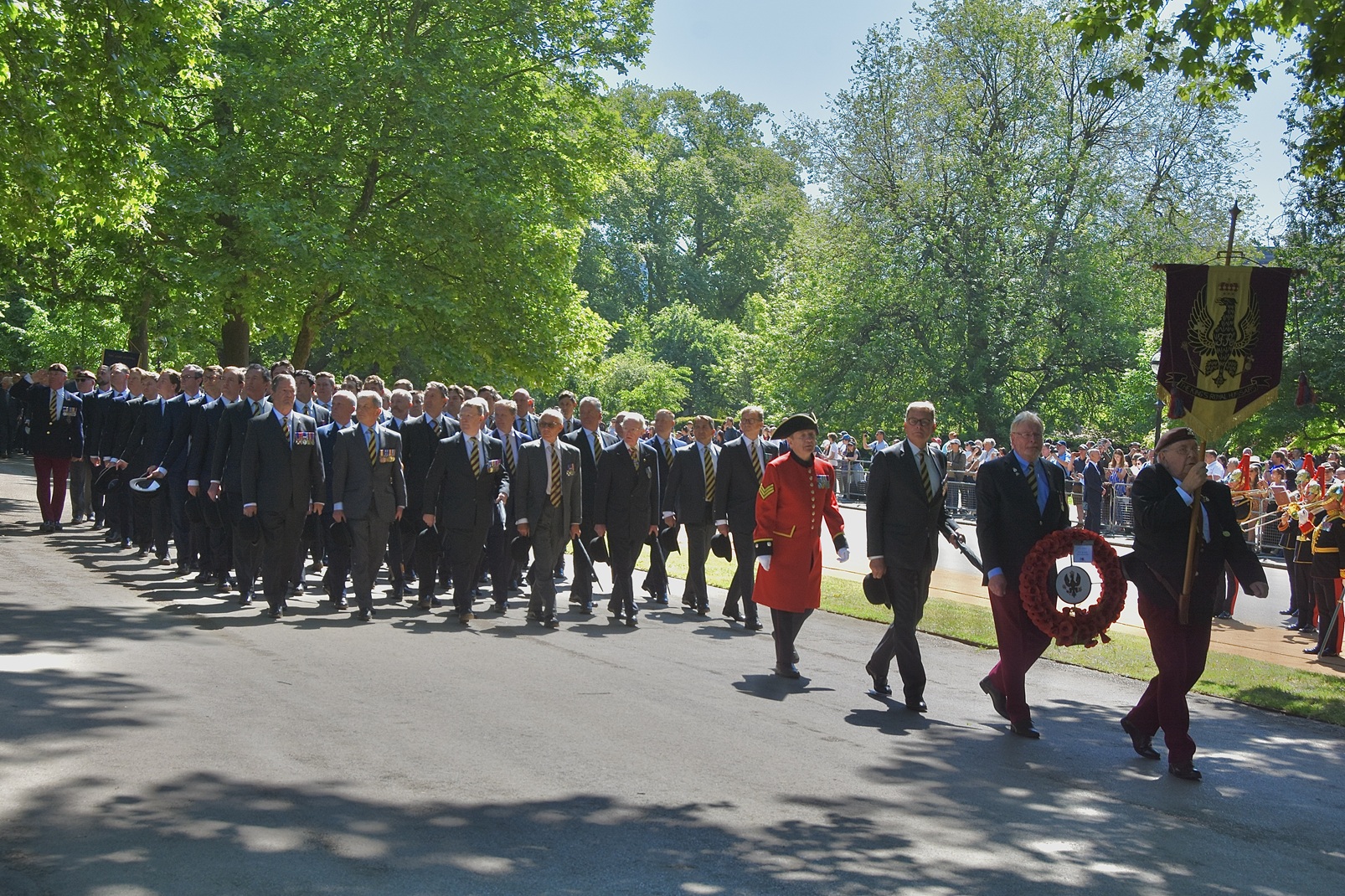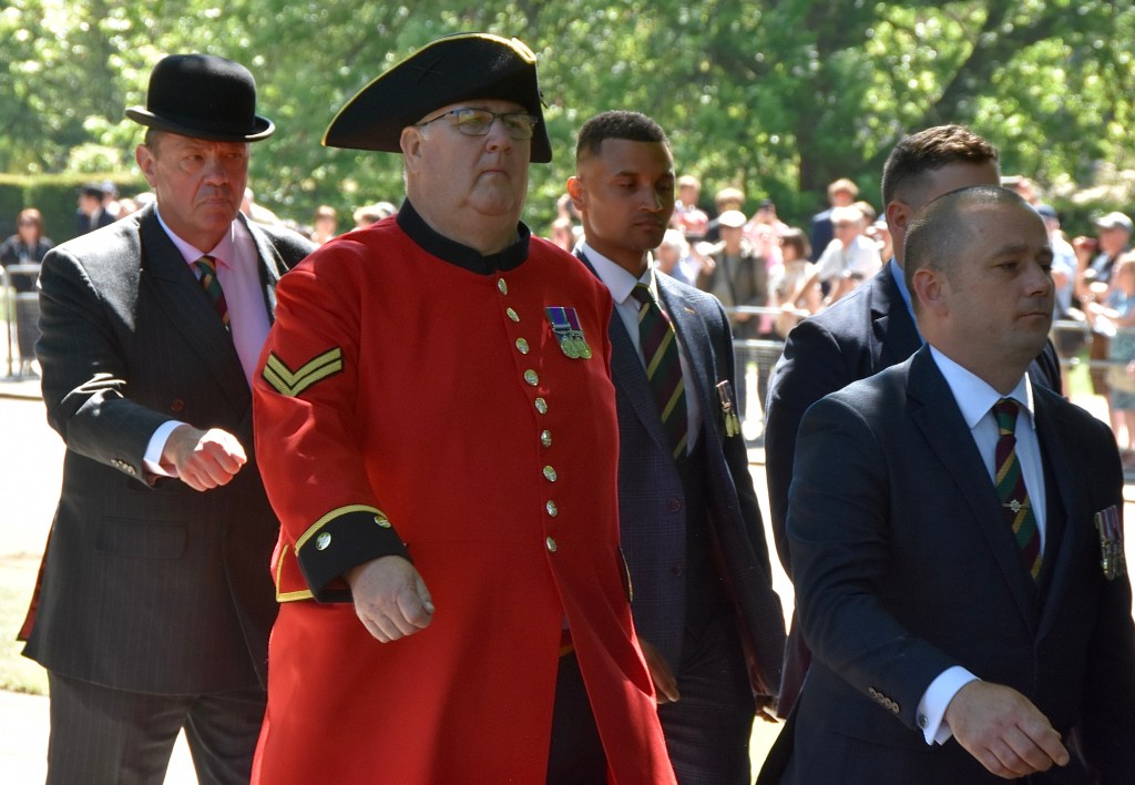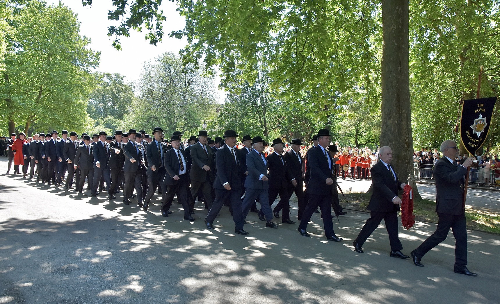 The RDG’s antecedents are typical of many current regiments, it is composed of four regiments raised between 1685 and 1689: the 4th Royal Irish Dragoon Guards, the 5th Dragoon Guards, the 7th Dragoon Guards and the 6th Inniskilling Dragoons. It is the senior Irish Regiment of the British Army.The Chelsea Pensioners present do not parade together but instead march with their former regiments.