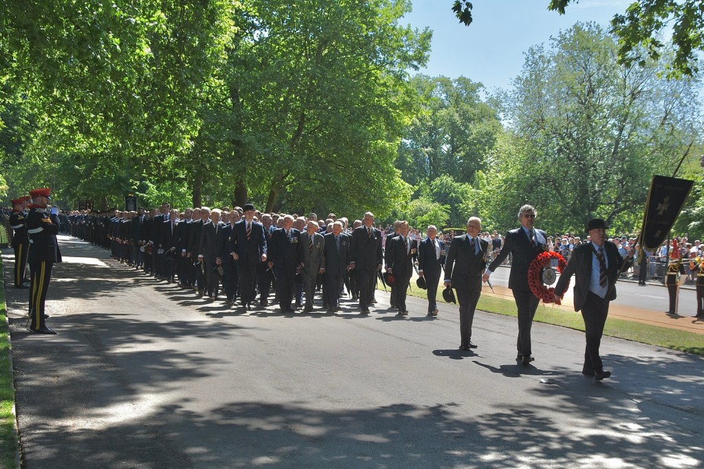 The RSDG is the senior Scottish regiment with regimental ancestors dating back to 1685 and 1681.Uniquely on the Old Comrades parade, the Royal Scots hold their bowler hats over their left breasts when performing “eyes right”.