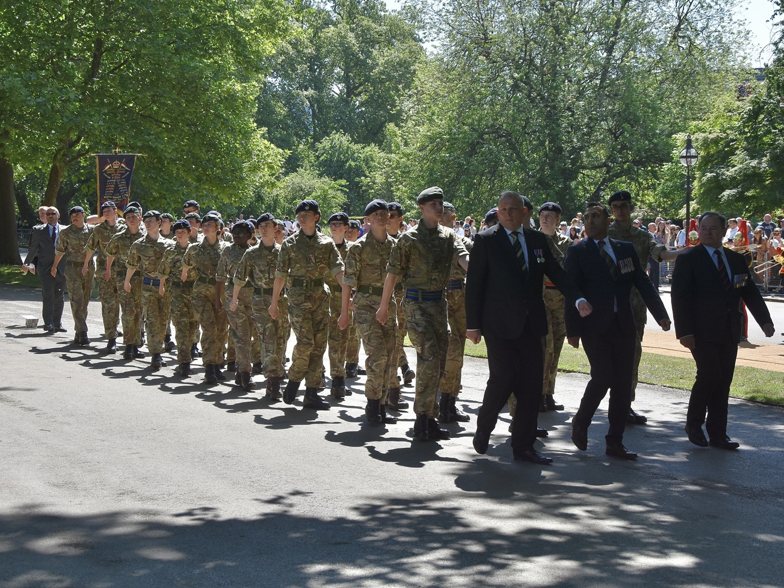 Representatives of Army Cadet Forces and Combined Cadet Forces affiliated to Cavalry Regiments bring up the rear.