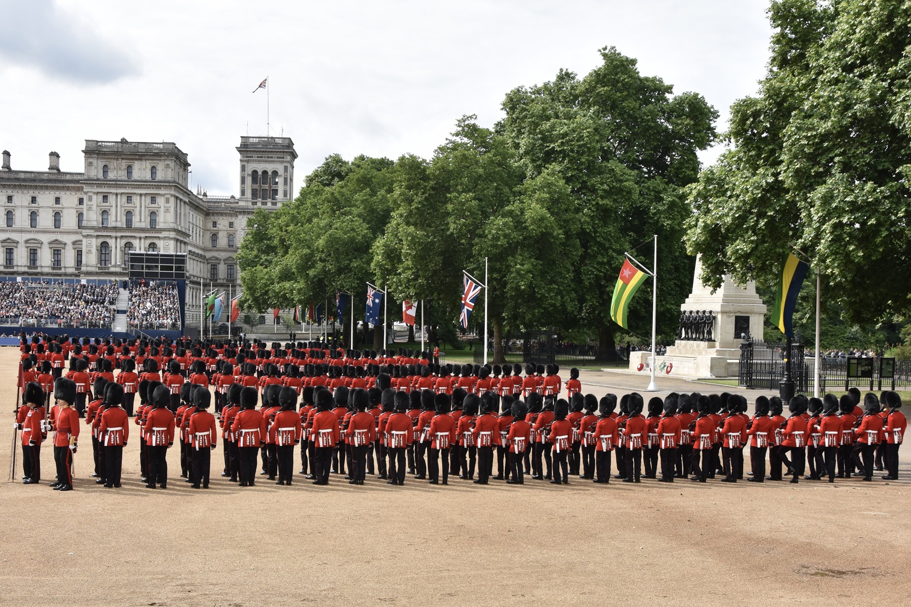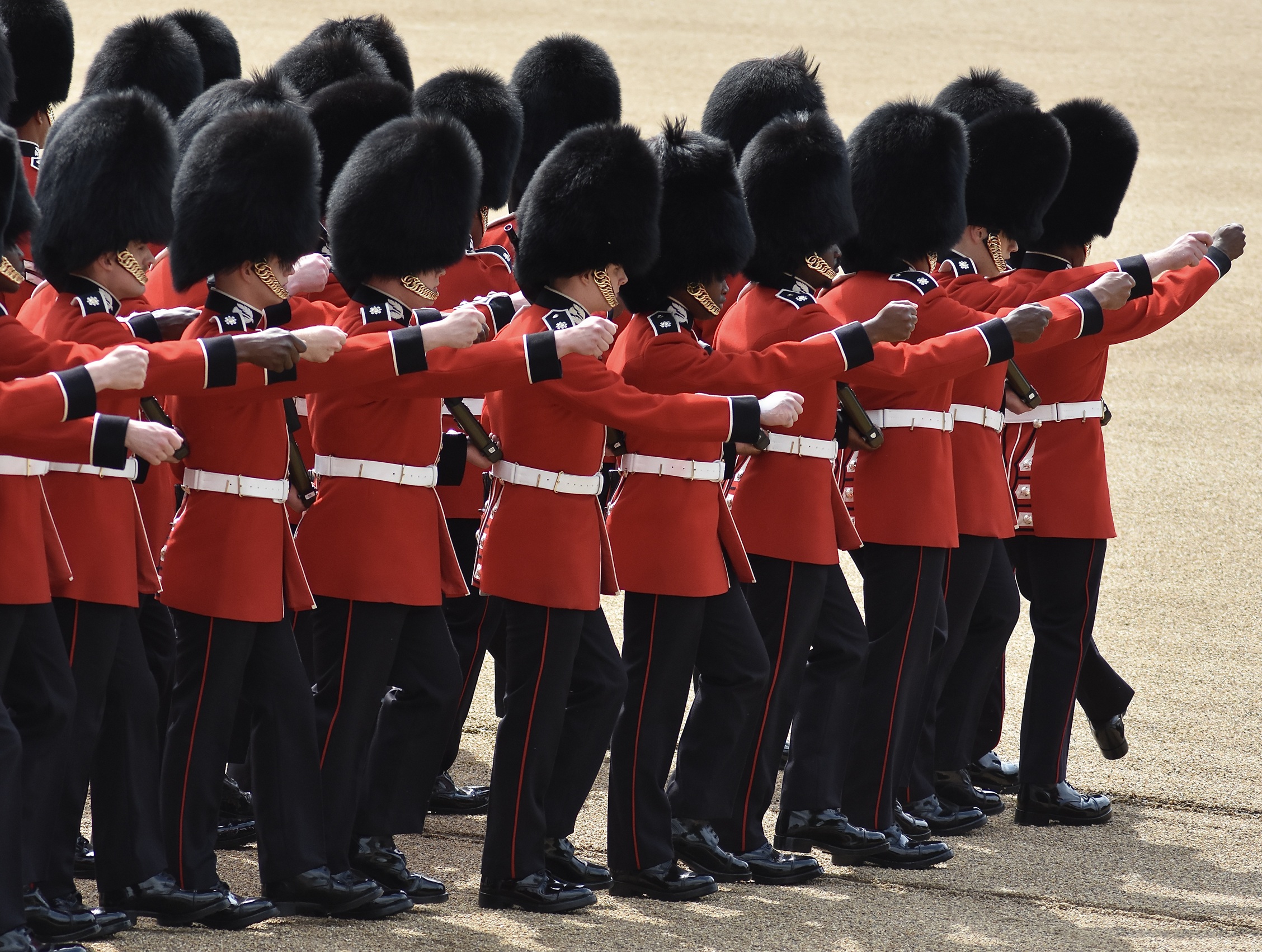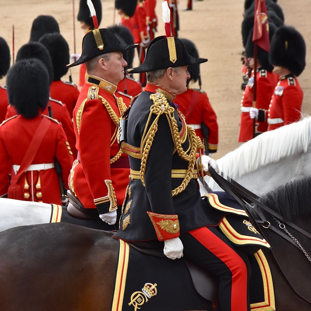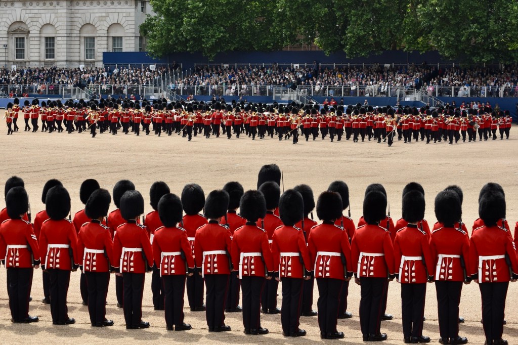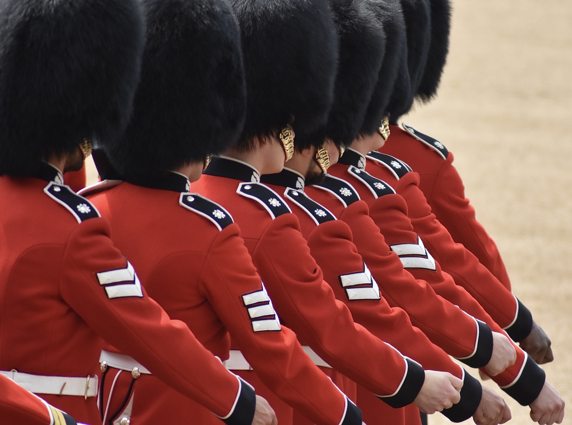 The Household Division is made up of the Household Cavalry (the Life Guards and the Blues & Royals) and five regiments of foot guards (Grenadier Guards, Coldstream Guards, Scots Guards, Irish Guards and Welsh Guards). For Trooping the Colour, they are joined by the King’s Troop, Royal Horse Artillery, a mounted ceremonial battery.
