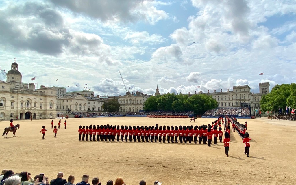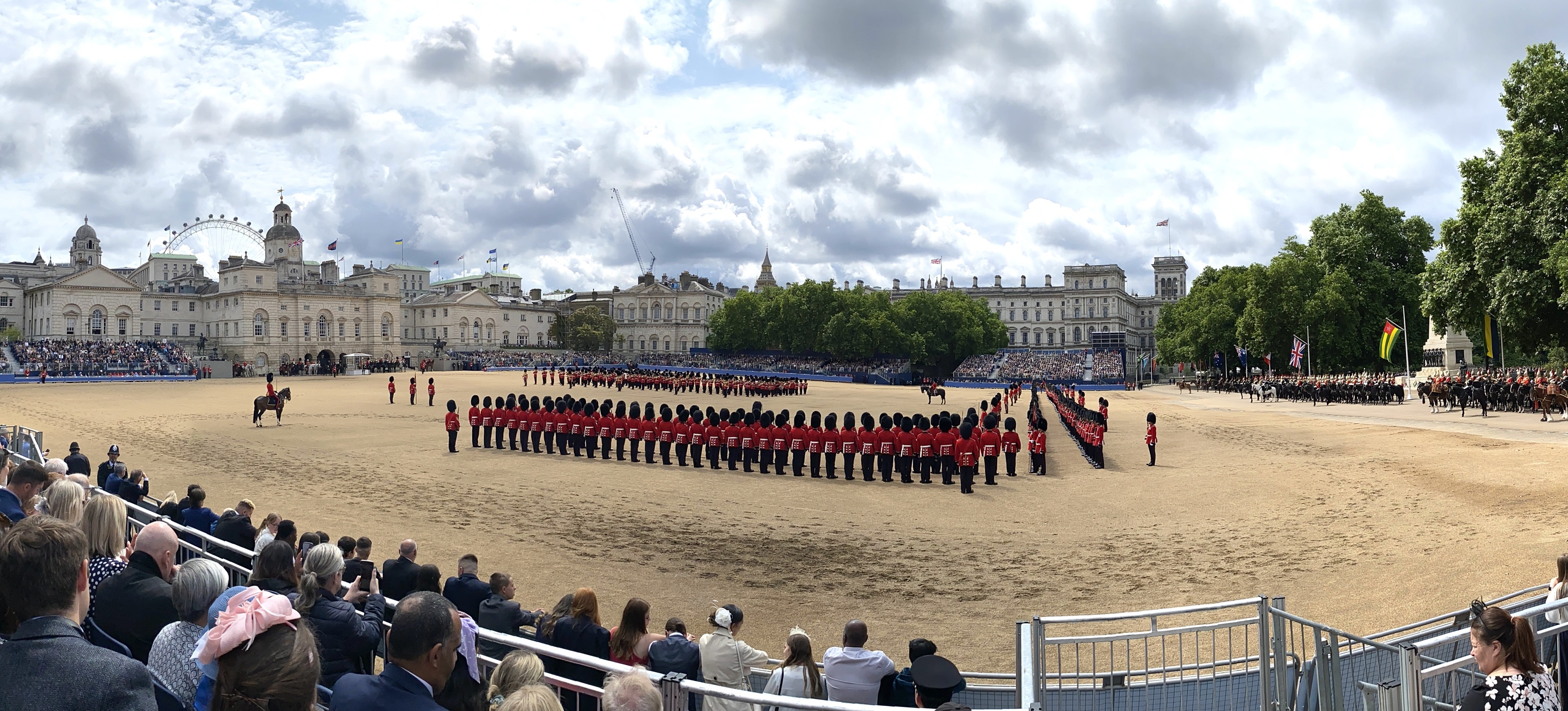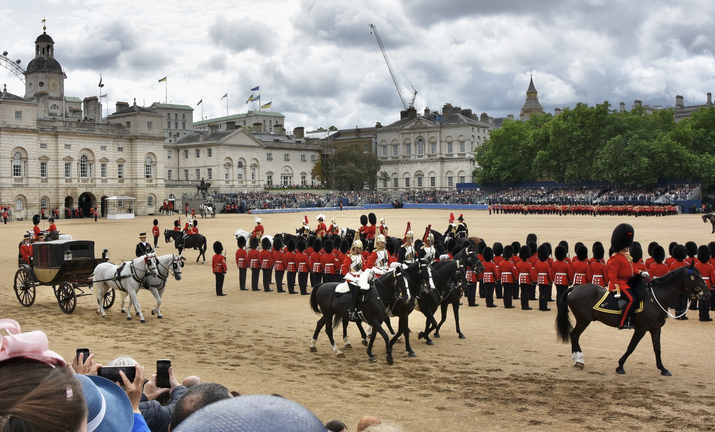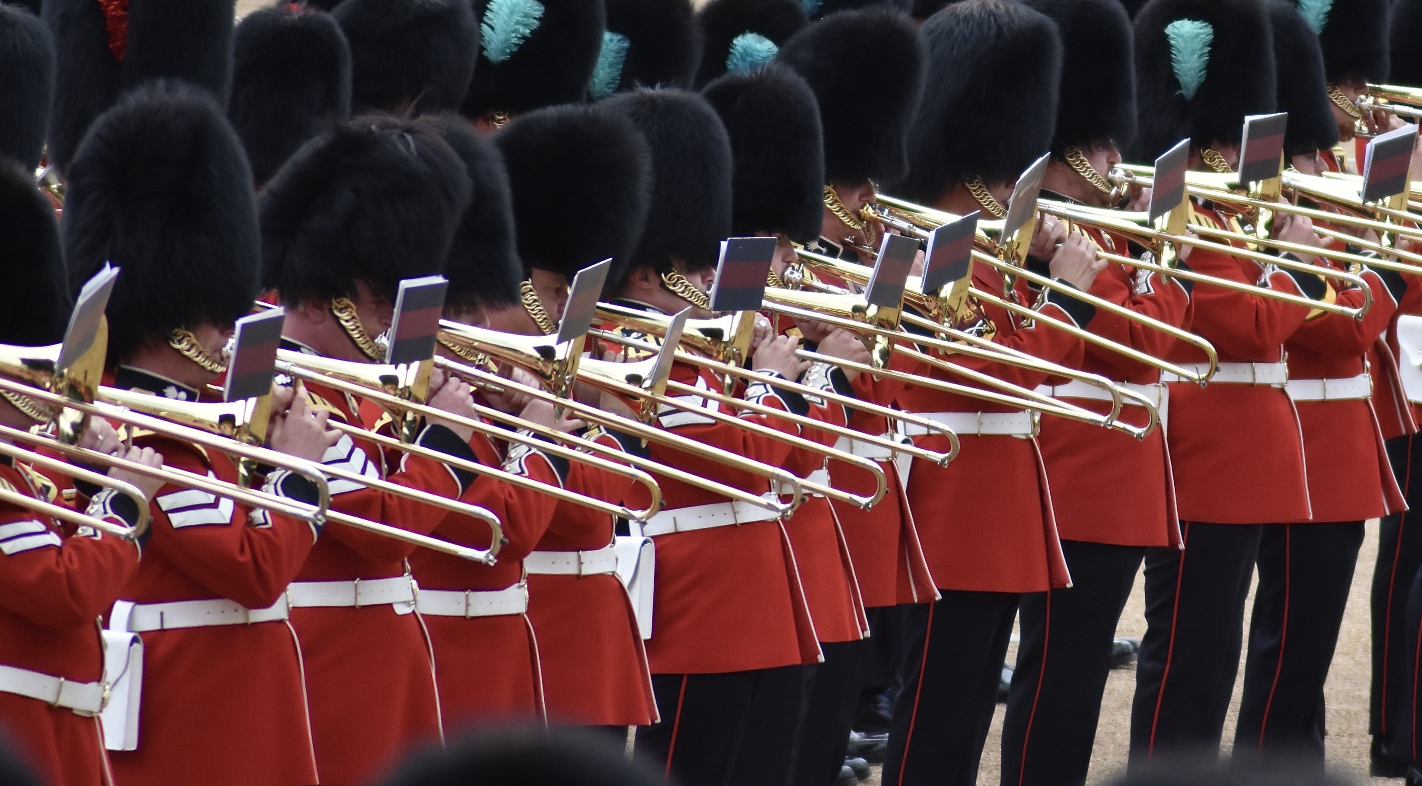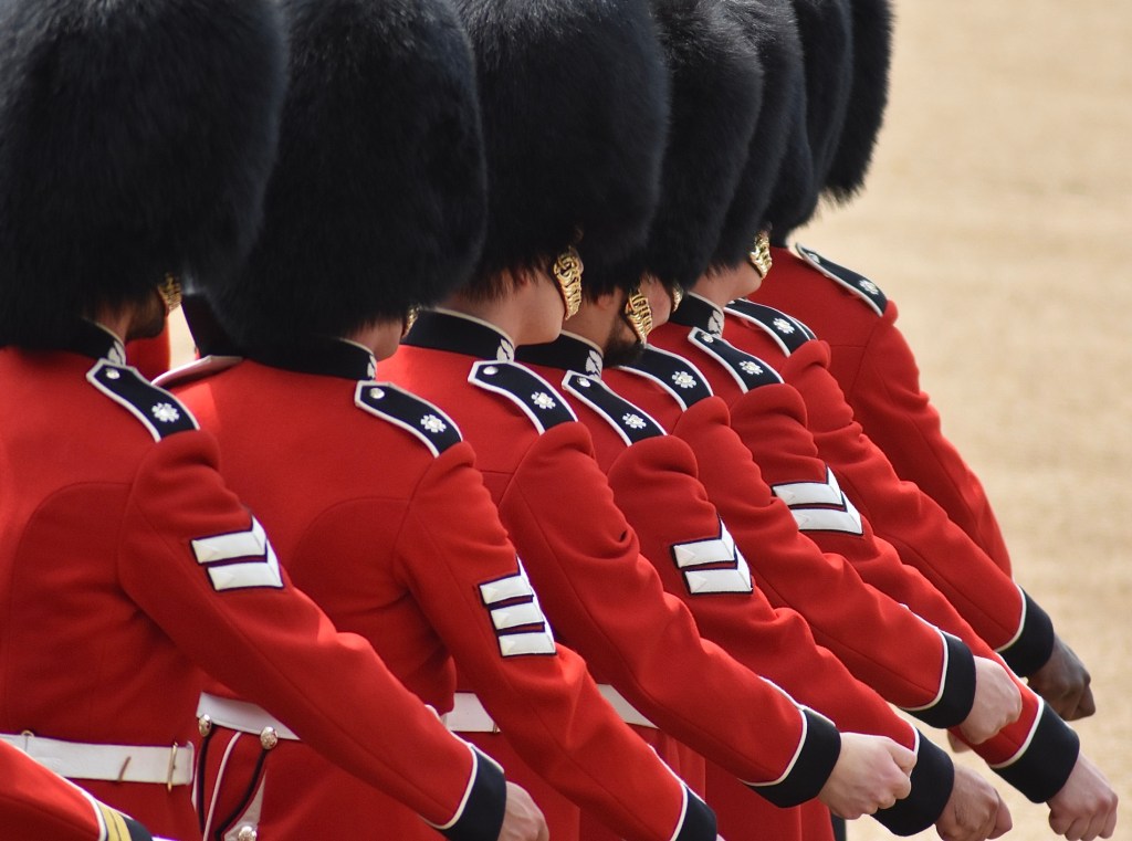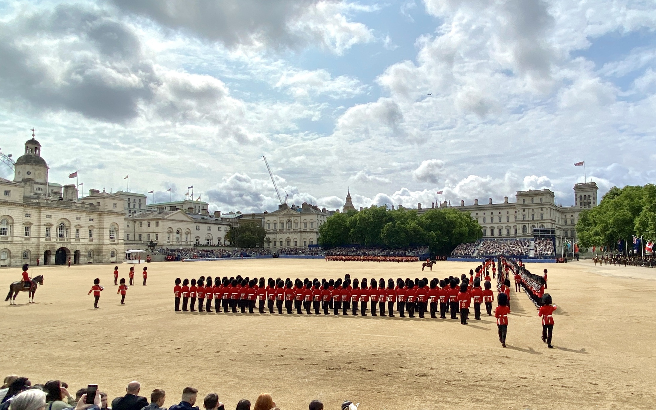 The Household Division is made up of the Household Cavalry (the Life Guards and the Blues & Royals) and five regiments of foot guards (Grenadier Guards, Coldstream Guards, Scots Guards, Irish Guards and Welsh Guards). For Trooping the Colour, they are joined by the King’s Troop, Royal Horse Artillery, a mounted ceremonial battery.