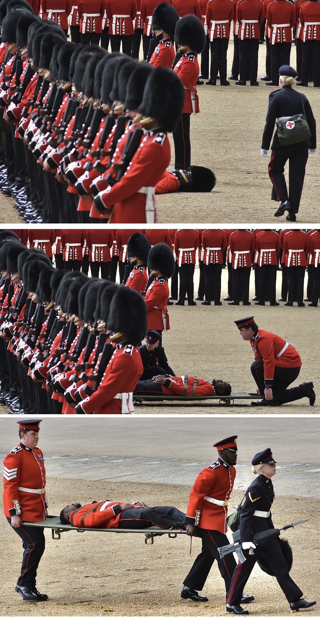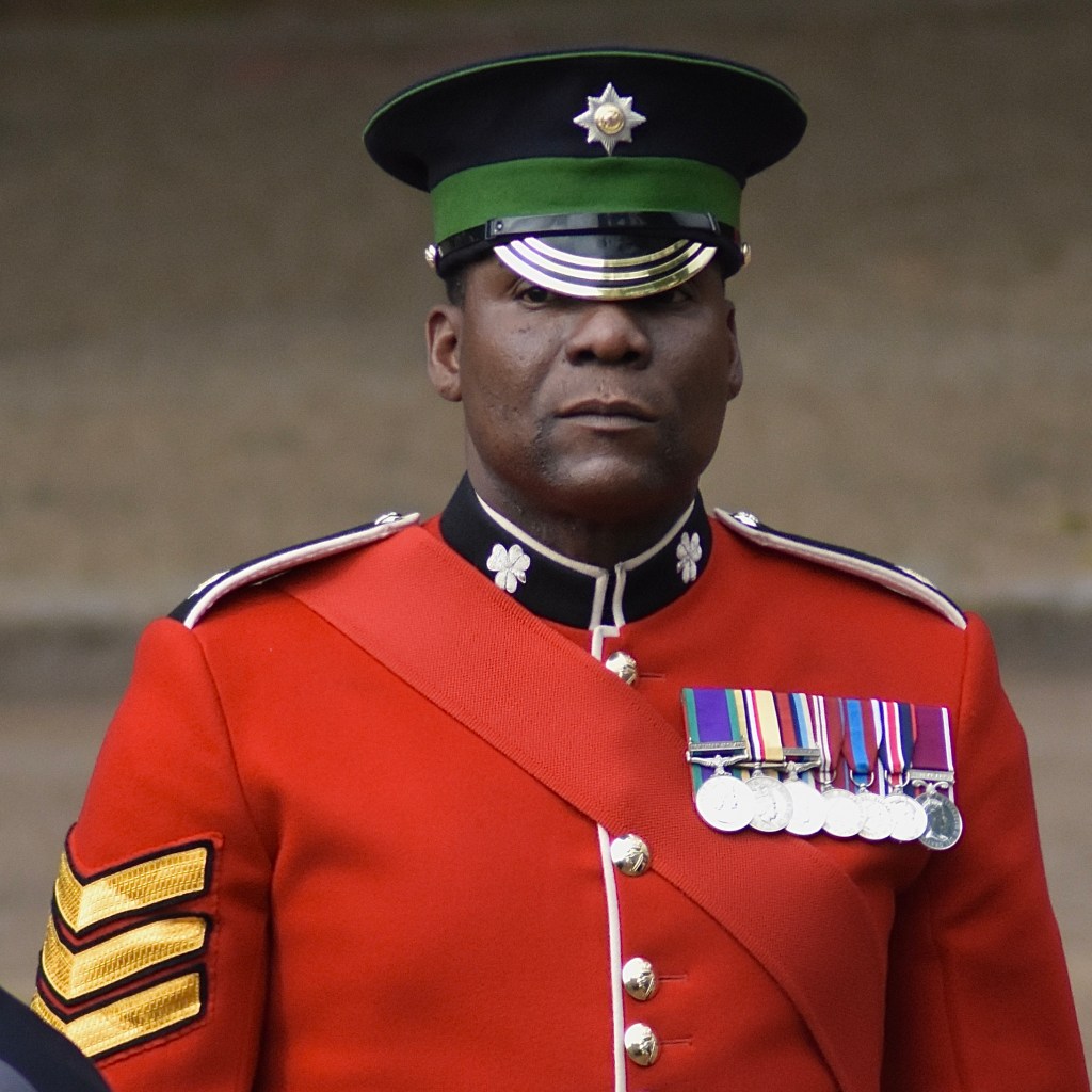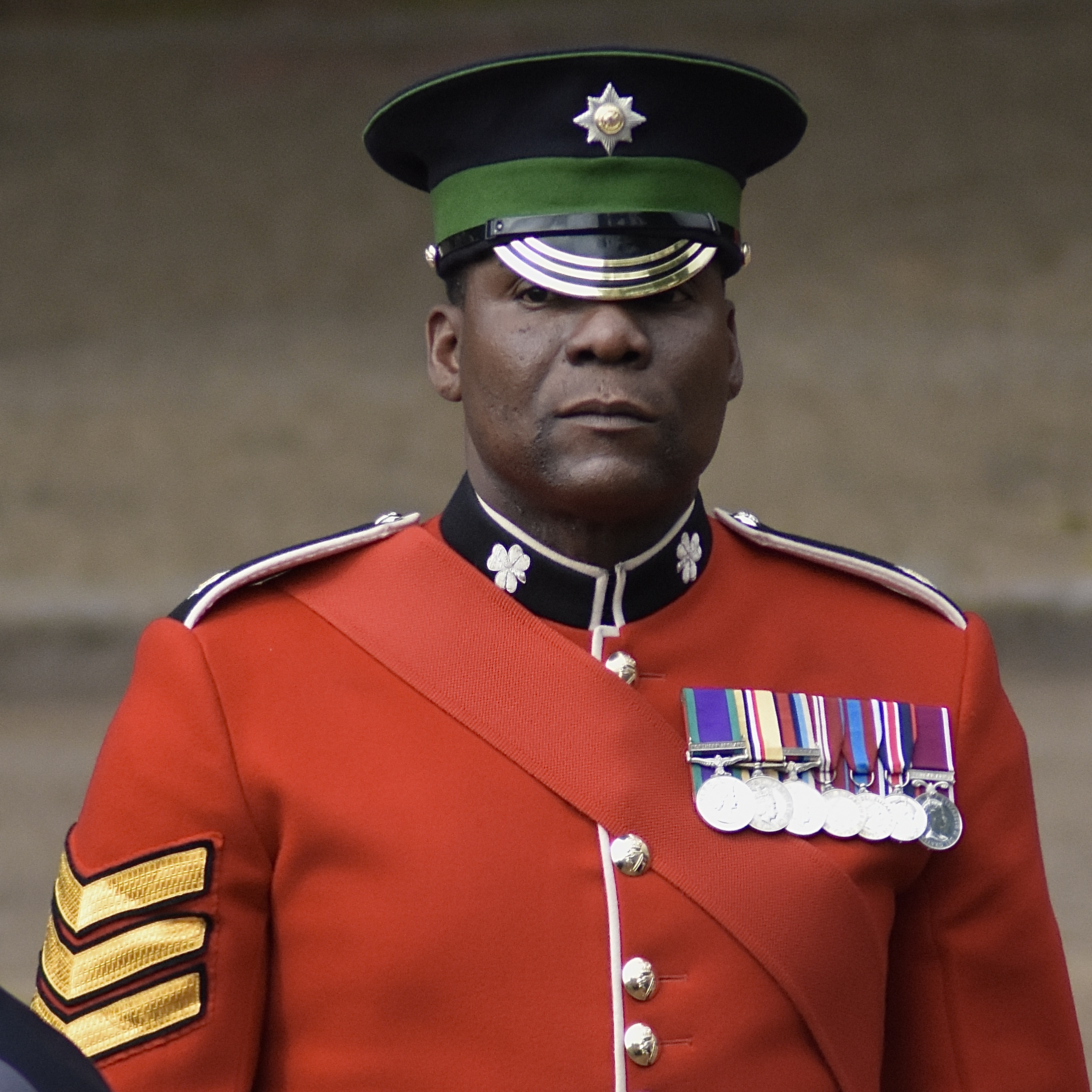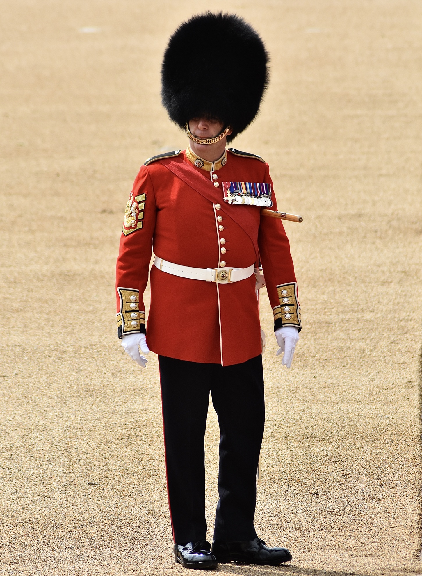 The man in charge. Warrant Officer First Class (WO1) Garrison Sergeant Major (GSM) Andrew “Vern” Stokes was keeping an experienced eye on things. The GSM London District is always a guardsman, holds one of the four most senior WO1 appointments in the British Army and has military ceremonial responsibility for all important state occasions. Stokes’ remarkable army career is outlined here.