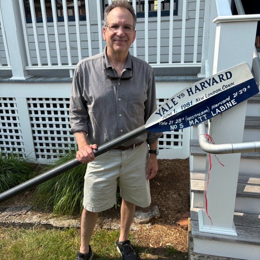 On 6 June, the day before this year’s Yale-Harvard Regatta, Matthew “Matt” Arnold Labine was remembered by his Yale teammates at Gales Ferry where they hung up the oar he used in the Yale-Harvard Race of 1981. Labine was a Yale oarsman and rowing coach at Fairfield University who passed away on 1 September 2017 at age 58.