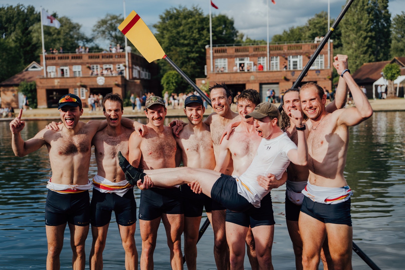 Insurers, Treasurers, Boatmen and spectators hold their breath as eights chase each other down the river intent on bumping the one in front to move up the starting ladder the following day. Having bumped the two crews should stop and pull into the bank (there are circumstances where one may continue but that is not for this article). The crews are split up into divisions and the top boat of one division is seeking to bump into the bottom of the division above. The crew at the top of the first division is ‘Head of the River’. The starting order is determined by the finish order of the previous year, and they are different for Torpids (Feb/March) and Eights Week (May/June). In both events the racing is over four days, Wednesday to Saturday.