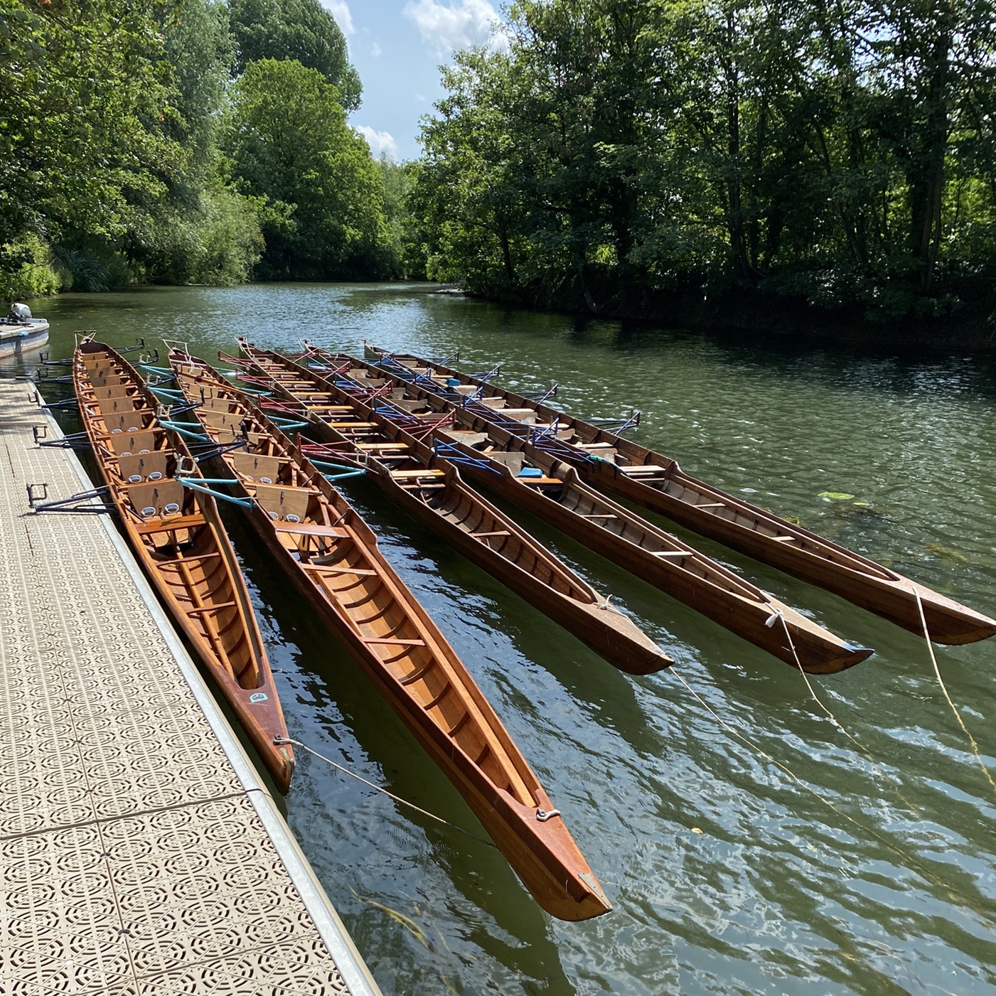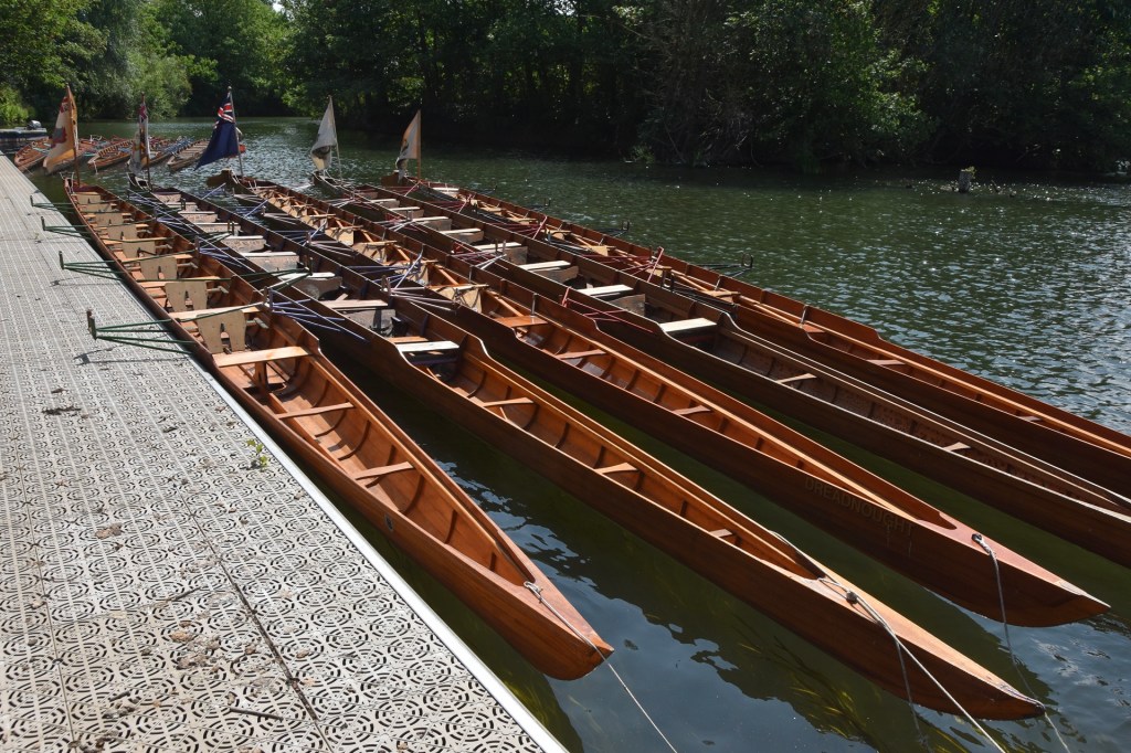 From left to right, the four “Upper Boats” used by the older boys (Monarch, Victory, Prince of Wales and Britannia). On the right, the fifth boat is Thetis, one of the “Lower Boats” used by the younger boys.