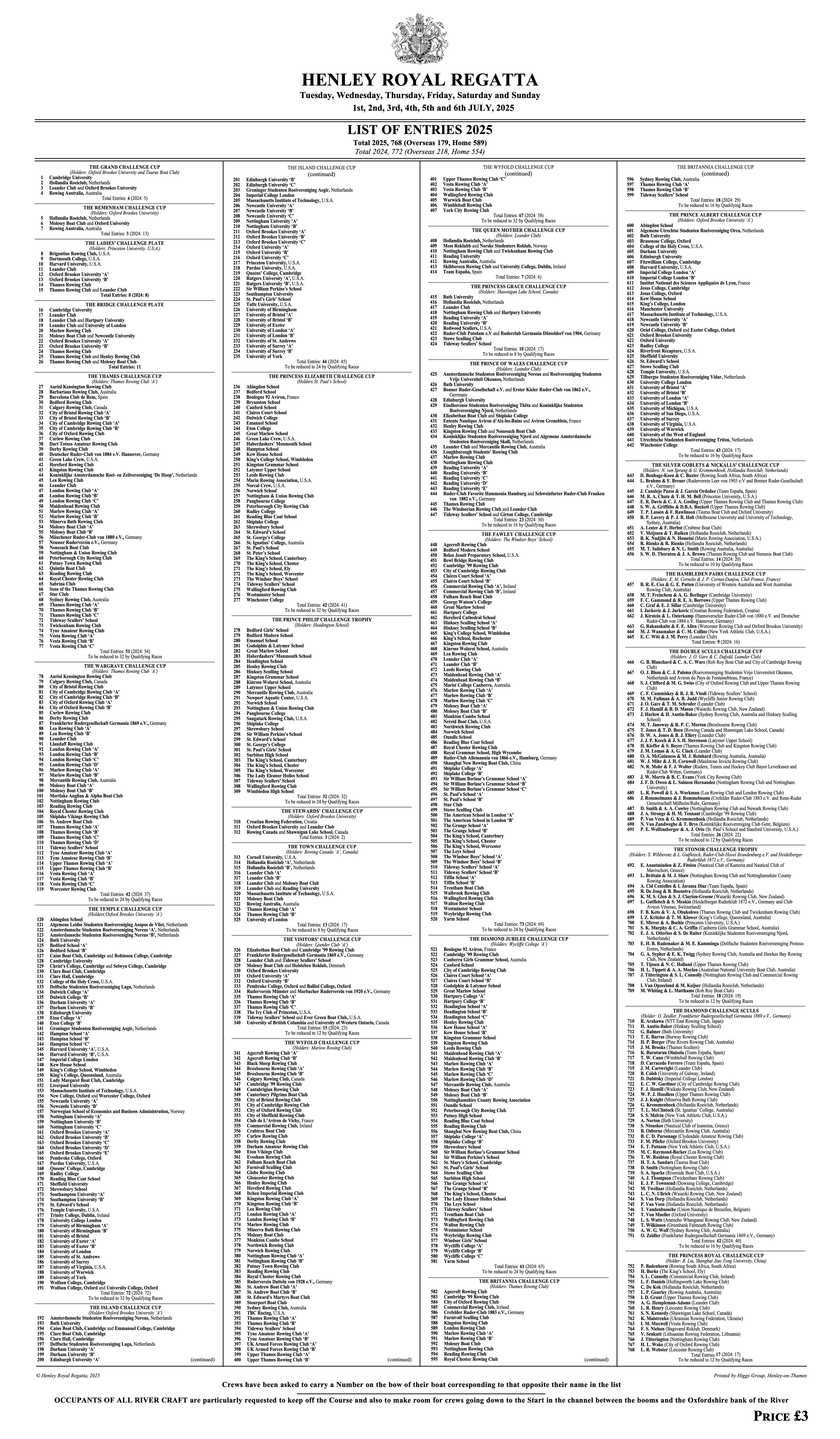This summer’s Henley Royal Regatta sees an incredible 768 Entries from 19 nations, including a record 589 domestic Entry and 179 from overseas. 4,367 athletes will compete in 404 races across the six-day Regatta.