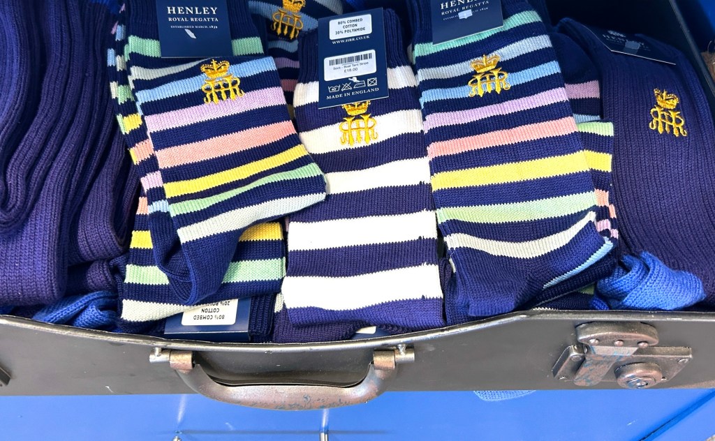 There are also shirts, sweatshirts, books, prints, key fobs, cufflinks, ties and socks. Lord, are there socks! They come in single colours, stripes and even a bulk pack with a different sock for every day to match the colour of the Stewards’ Enclosure passes.