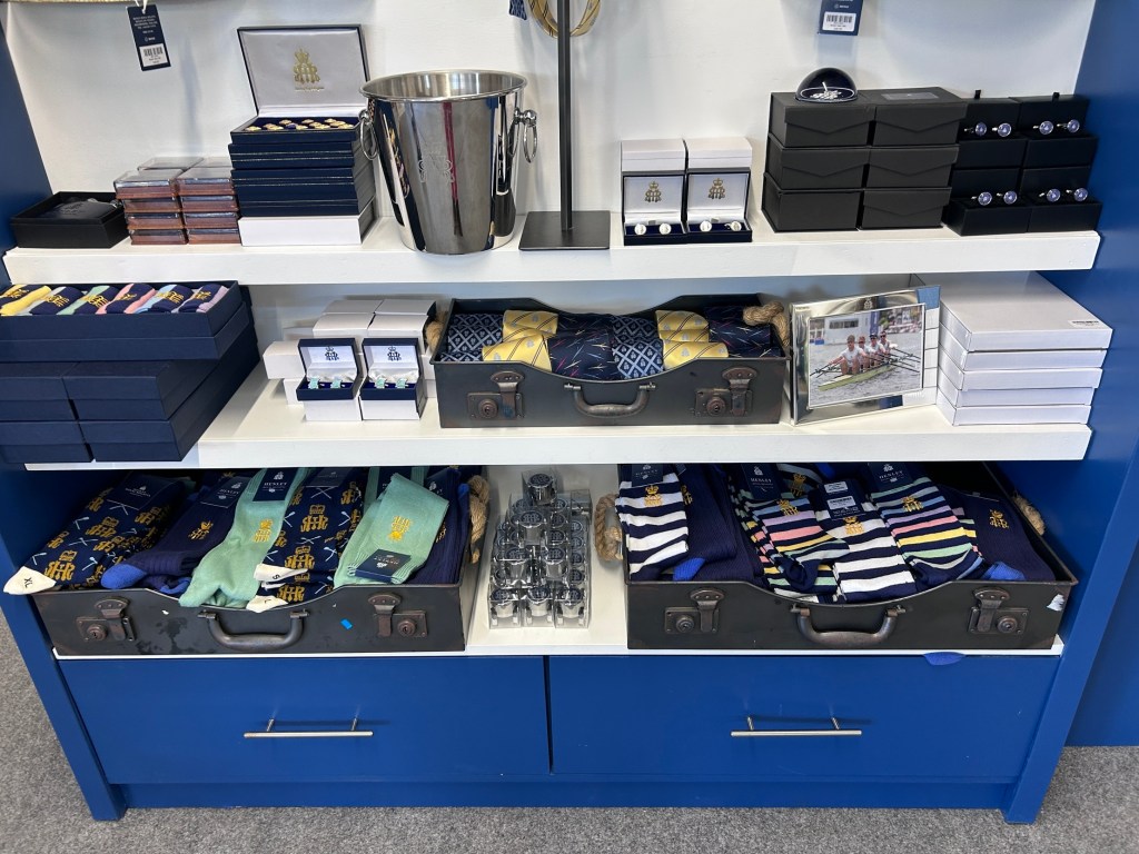 Being a rowing club, the range of sportswear for men and women is most impressive. No doubt visitors to the shop will return home and turn their friends, ahem, pink with envy.