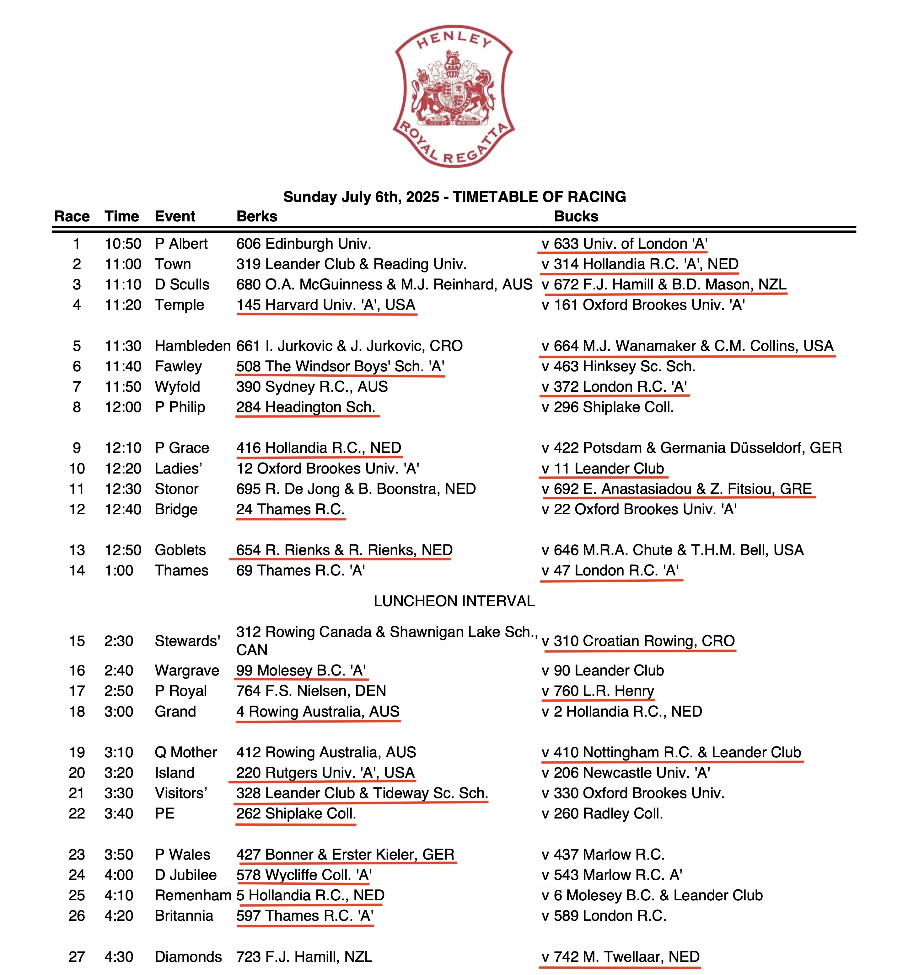 King George II defined an English summer as “Three fine days and a thunderstorm.” The Hanoverian monarch would have had his prejudices confirmed had he been at this year’s Henley Royal Regatta where climatic conditions were certainly changeable – but not enough to spoil the fun and not enough to stop 2025 from being regarded as a “Classic Henley” with some wonderful old rivalries fought out in the (largely) civilised manner that we expect from the sport of rowing.