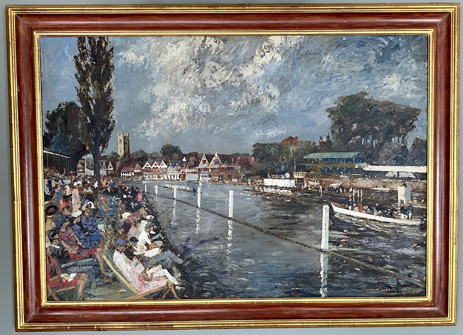 The Henley Finish, a painting by Jeremy King hanging in the Leander clubhouse.