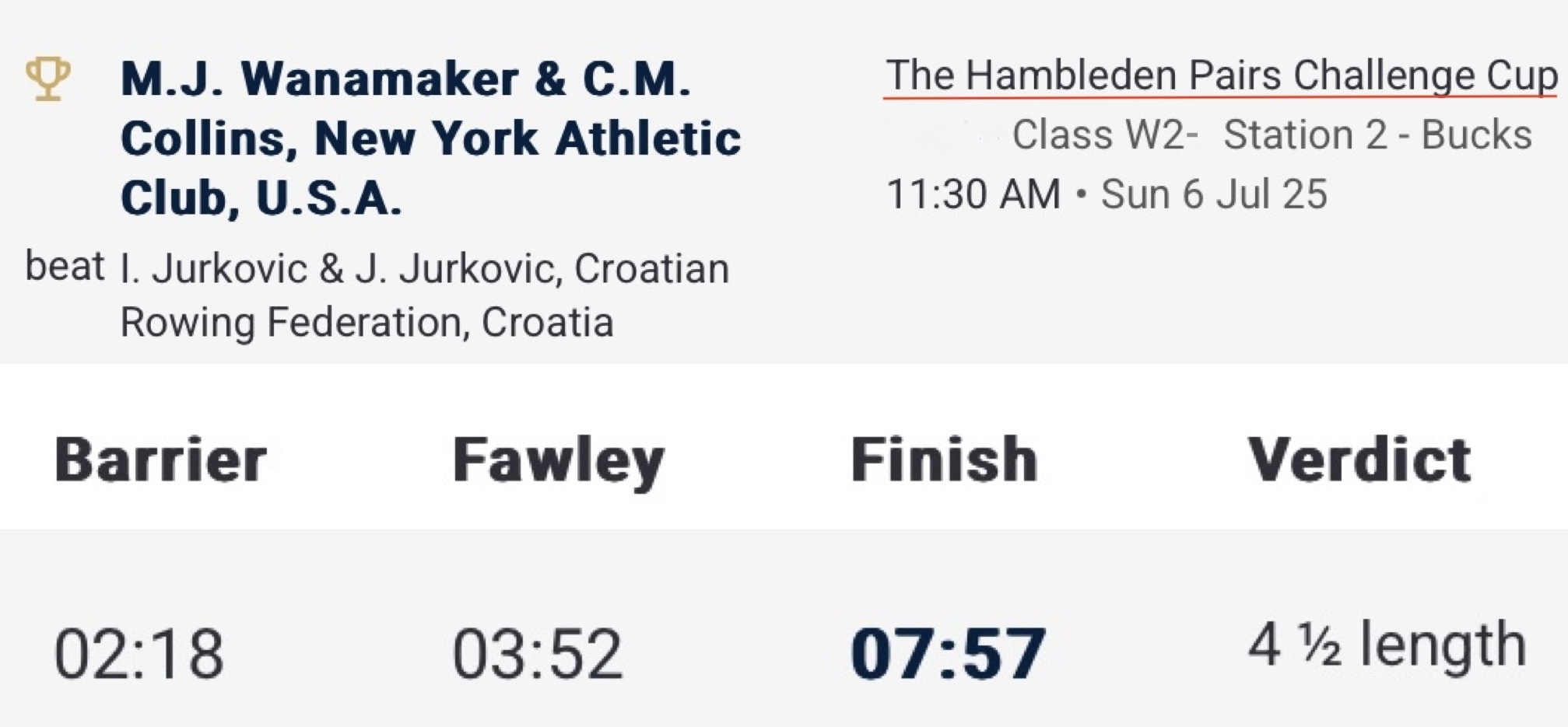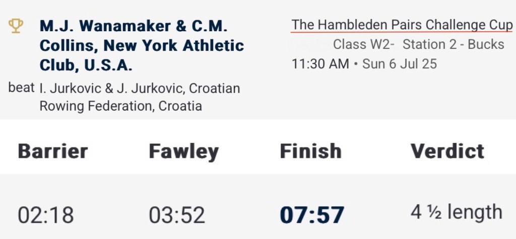 Despite a strong start from the Croatian Jurkovic sisters, Collins and Wanamaker pulled away to win by 4 1/2 lengths.The US Olympians, veterans of Tokyo and Paris, raced as New York Athletic Club but trained out of Cambridge with Light Blue blades and a Light Blue coach.Collins and Wanamaker with coach Matilda Horn.Lauren Henry is the best female single sculler that Britain has had for a long time.Henry set a new event record for the 2,112-metre course of 7:55.