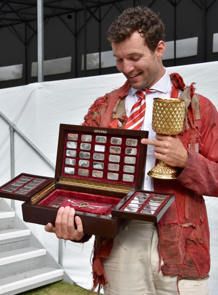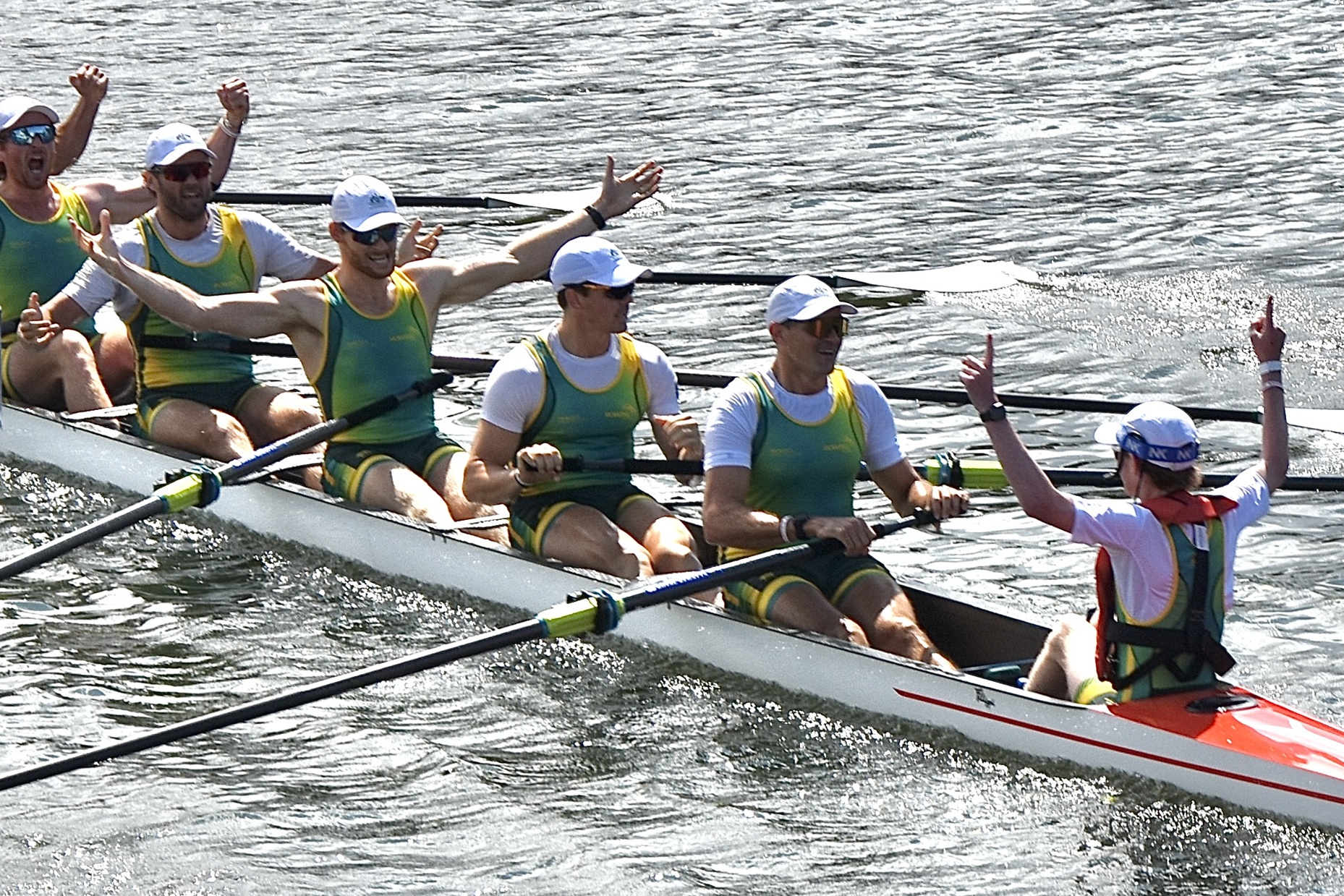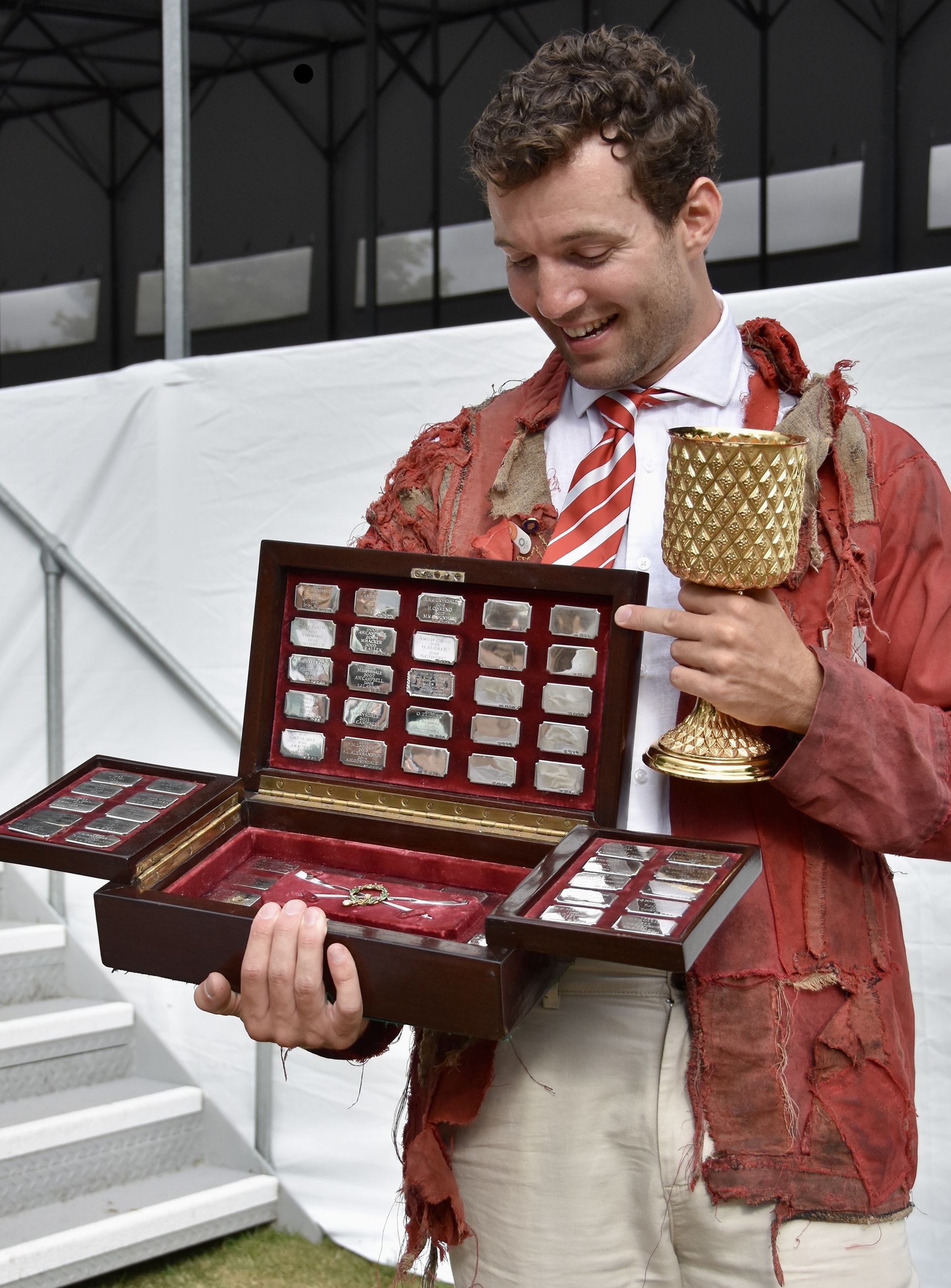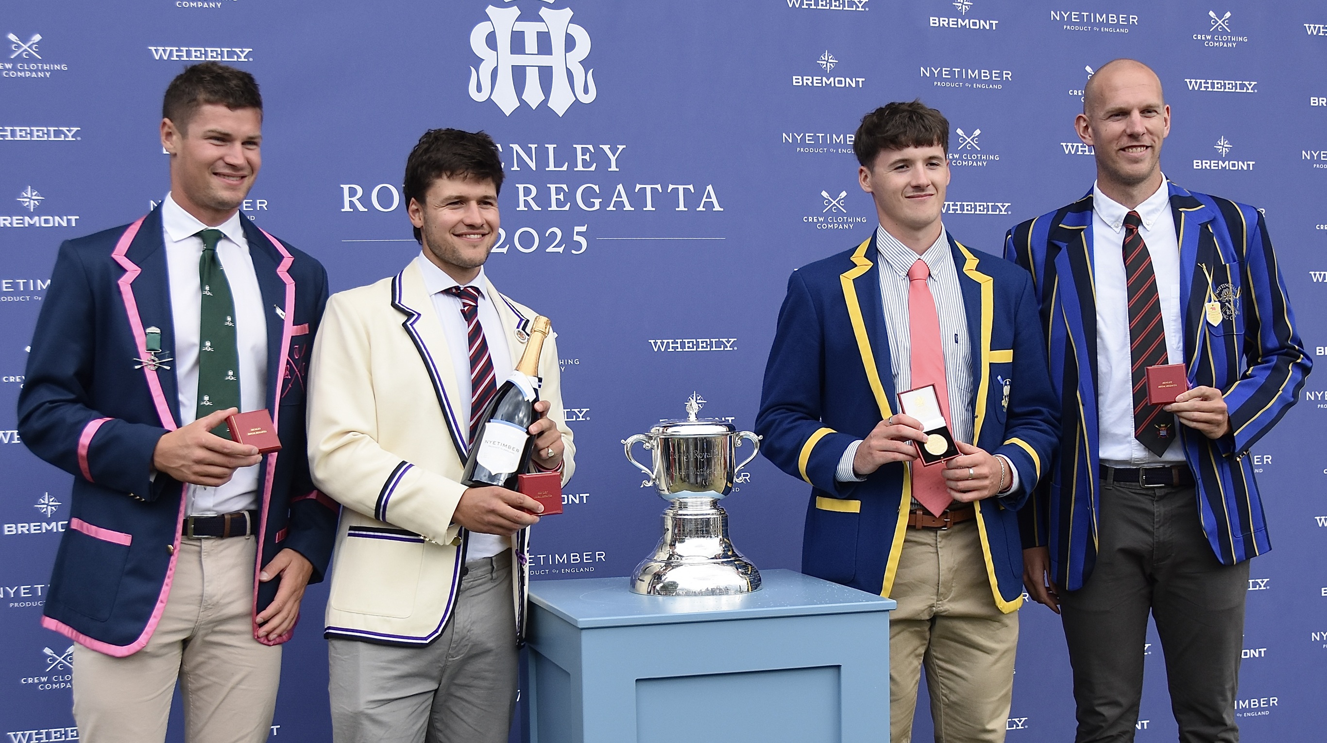 Some of the glittering prizes that in a short time will be covered in fingerprints, the regatta’s “Official Sparkling Wine” and various body fluids – though hopefully these will be limited to sweat and spittle.The Grand was a convincing one length win by the Australian national crew over the Dutch. The day before they had beaten the British by 2/3 length and Hollandia had beaten Cambridge University by just 1/3 of a length. It was a remarkable effort by CUBC, who were eligible for the Ladies’ Plate, and afterwards they seemed to have no regrets at undertaking the very brave attempt. The Australian crew included the coxless four that had back to back wins in the 2025 Rowing World Cups.Ain’t life Grand?Despite a sudden if brief downpour mid-race, the Croatians had no problem in finishing 1 1/2 lengths up on Canada.The four is a new boat for the remarkable Sinkovic brothers, Martin and Valent (now aged 36 and 37), who were joined by twins, Patrik and Anton Loncaric. The double Olympic Gold winning Sinkovics are arguably the two best rowers in the world and have one previous Henley win, the Silver Goblets in 2018.Umpire Pinsent could not be distracted by donning his waterproofs and stoically endured the rain.