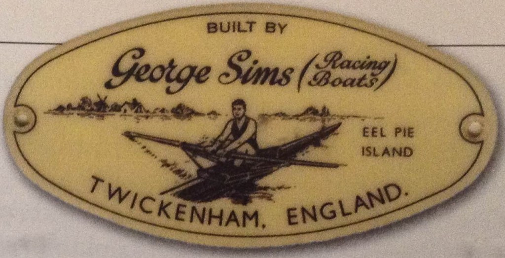I am restoring an old wooden George Sims single scull which is going on display in our new club (Whakatipu Rowing Club, Queenstown, NZ) shed extension. The boat was built, I understand, about 1963. When I bought it in the early 1980s, it was in a poor state although the hull was sound. I did a job on it then, including making new riggers and I have used it since, but now I think it’s time to retire the old girl and hang her up for good. BUT it’s missing the maker’s label. From the look of the hull, knees, ribs etc., I’m certain it was built by George Sims (Racing Boats) of Eel Pie Island. If anyone has a label they could sell me, I would be extremely grateful, or failing that if you could send me the dimensions of the oval, width and height, and I’ll get one made. I do have an image of the label obtained on-line and will use it to make a copy if need be.