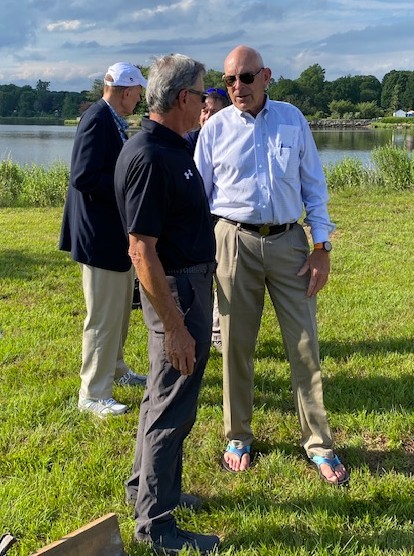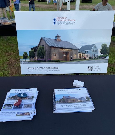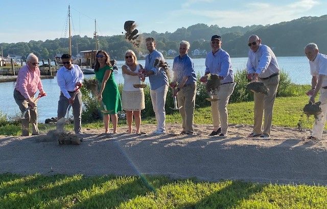 Under a blazing hot sun last Wednesday, people gathered by the Mystic River to witness how local politicians and representatives from Stonington Community Rowing Inc. (SCRI) broke ground for what will be the Mystic River Boathouse Park with the Jim Dietz Rowing Center and Hart Perry Boathouse.