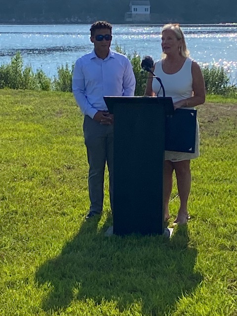 Mike O’Neill, President, Stonington Community Rowing, mentioned how important it had been that the communities on both side of the Mystic River had come together to see the project being fulfilled. O’Neill recognized John Thornell, SCRI Director of Rowing, for raising $2.3 million for the rowing center and thanked several key donors. He remarked how the sport of rowing had changed the students’ lives long after they had graduated from Stonington High School. The program started nearly three decades ago with a few crews. Last spring, almost 70 students were on the team. Over the years, more than one-third of students continue rowing in college. One recent example is John Thornell’s son Ian, who rowed in an Oxford Brookes University crew at Henley Royal Regatta earlier this month.