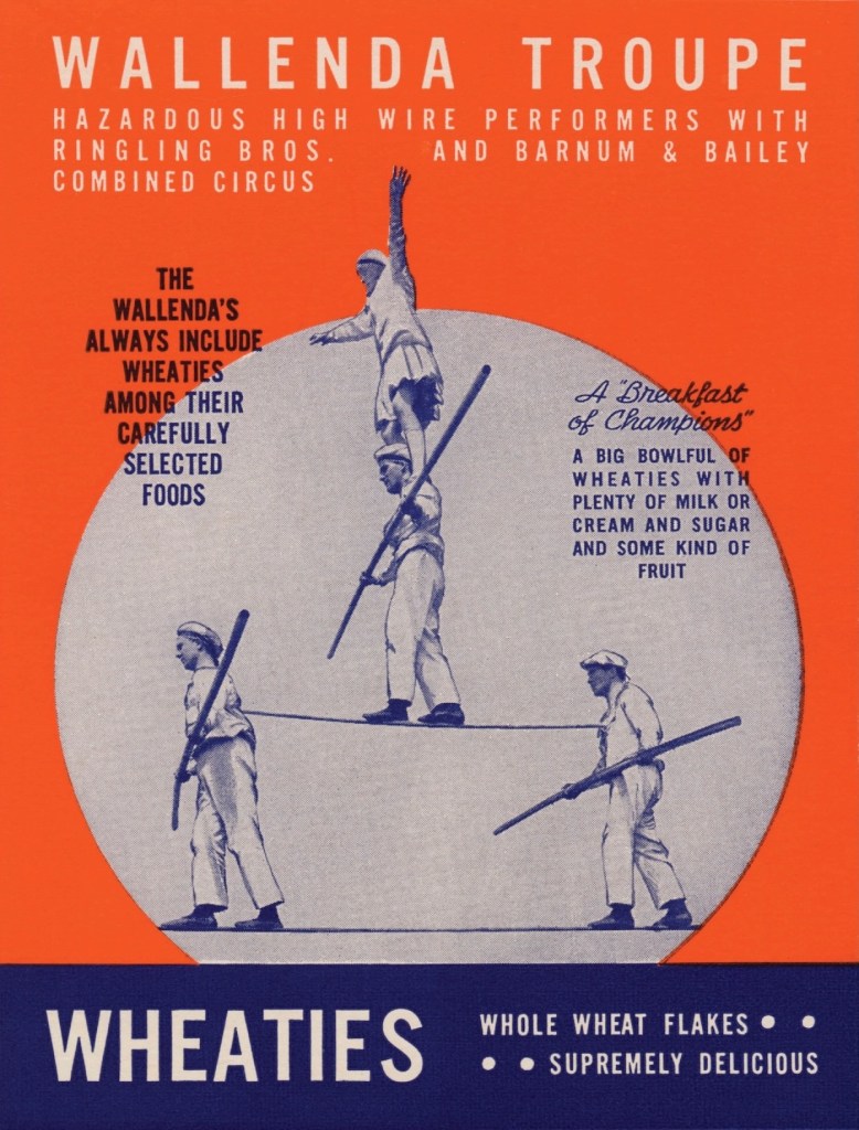Not only were individuals featured, but groups were recognized, as well. An early example is the Wallenda Troupe of high wire circus performers depicted on the box in 1936.