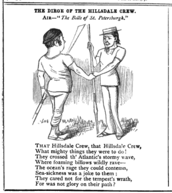 Captain C.W. Terwilliger of the Hillsdale rowing crew writes to the Sportsman [newspaper] saying that he understands that the apparent inaction of the Hillsdales in regard to their treatment by the Amateur Rowing Association is creating unfavorable criticism, and asks the friends of the crew to withhold definite opinions until the matter is finally settled…. The Sportsman, editorially, says: Although the Hillsdales have been persecuted and oppressed, their conduct has been most forbearing and patient. The report continues to severely criticize the ARA for unjust and unfair actions to amateur sport. And they finish, it is really time that the remorseless opposition to the Hillsdales was crushed.