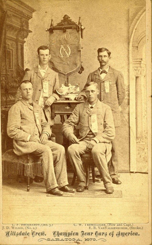 I became especially interested in the Hillsdale Rowing Club Four, commonly known as the Hillsdales, when I purchased six medals that were won by their captain, Clarence Terwilliger, in 1879, 1880 and 1881.