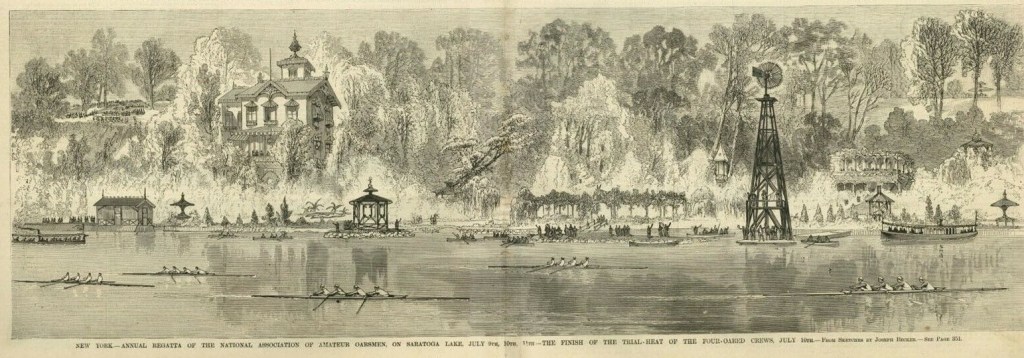 Saratoga NY – The Finish of the Trial-Heat of the Four-Oared Crews, July 1879